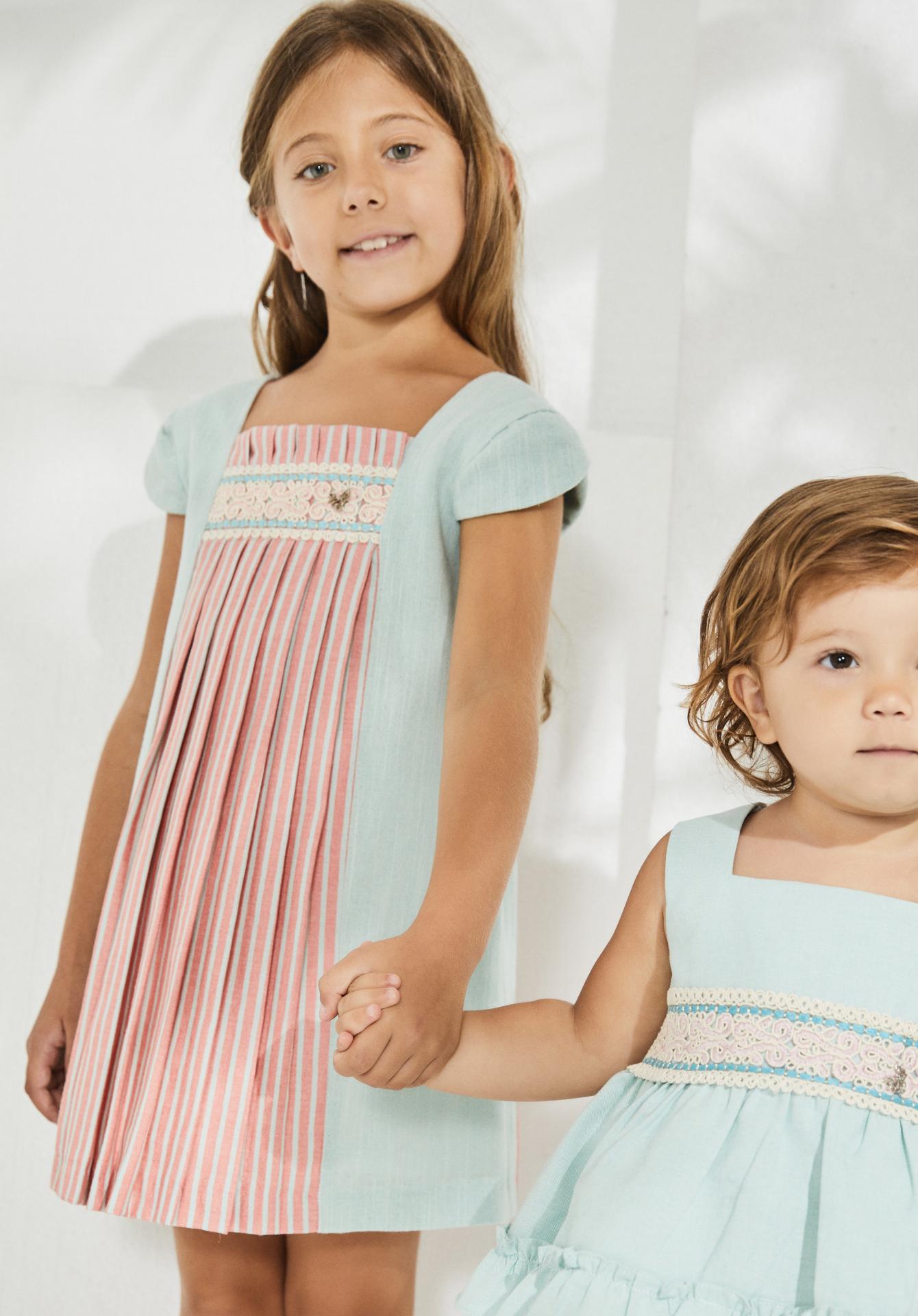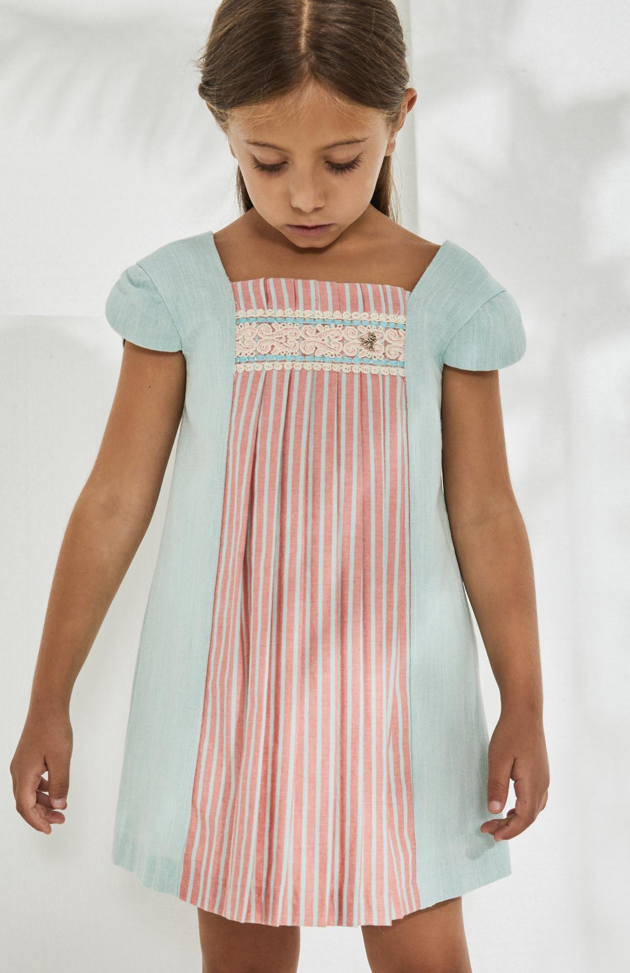 Nekenia Vestido Infantil Ceremonia Bicolor Frontal Rayas Coral Tablas Lateral Verde 2321843