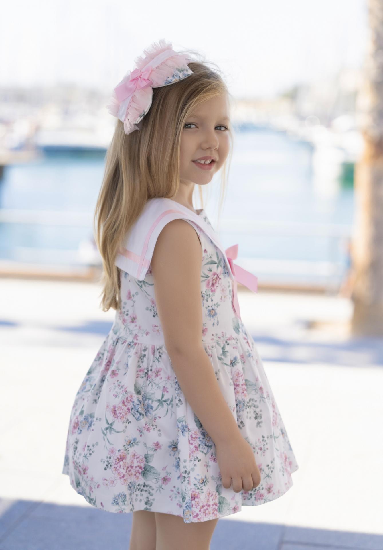 Miranda Vestido Infantil Estampado Flores Cuello Marinero Lazada "Camelia" 0252/V