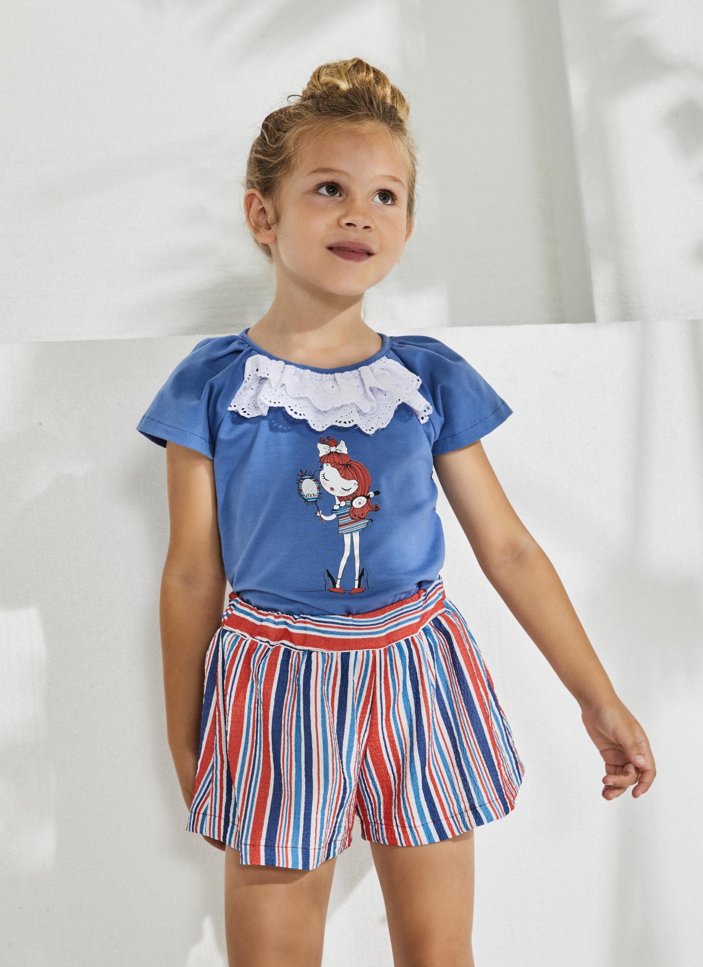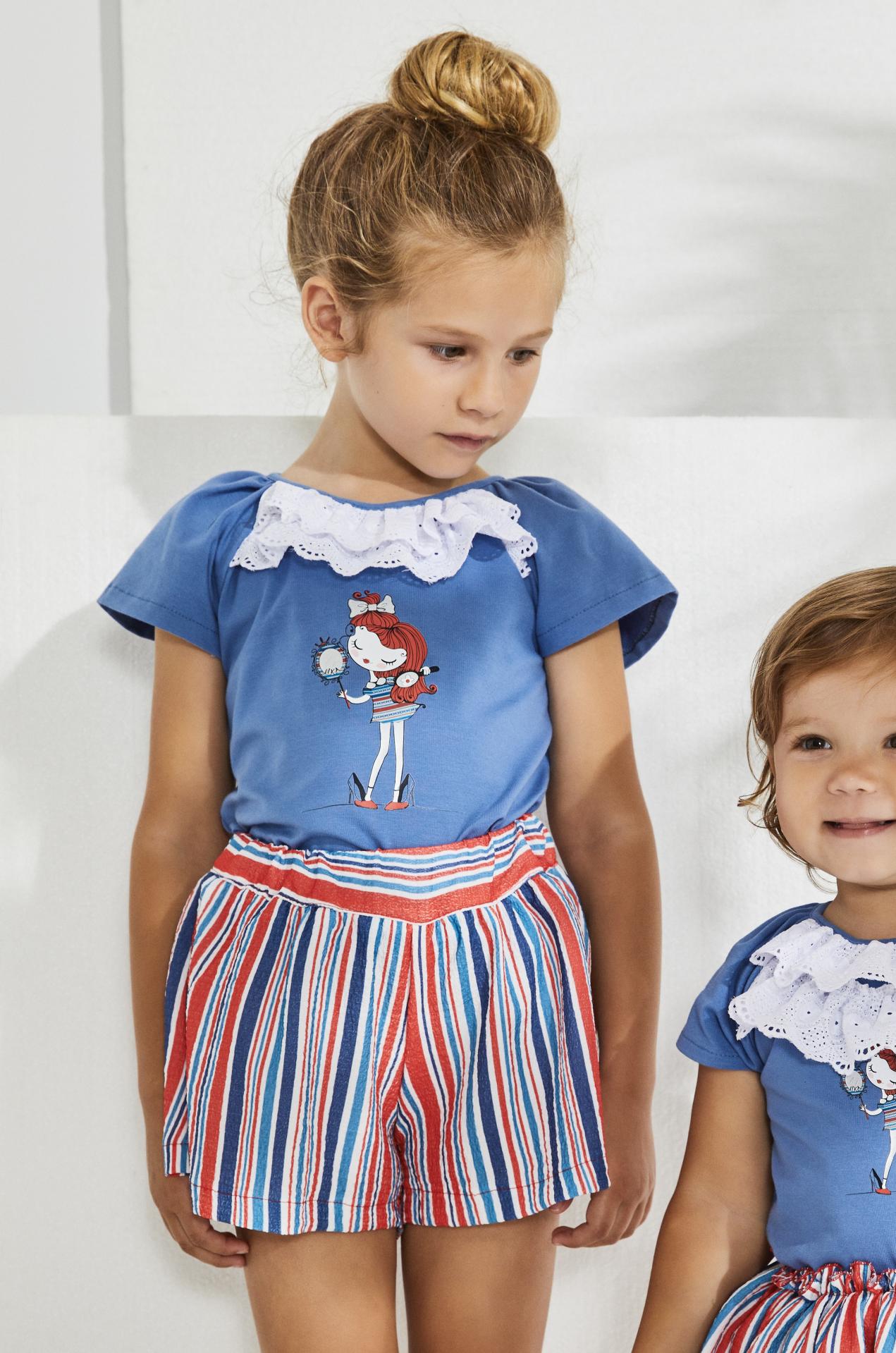 Nekenia Conjunto Infantil Camiseta Azul Serigrafia Volantes Short Rayas 2321019