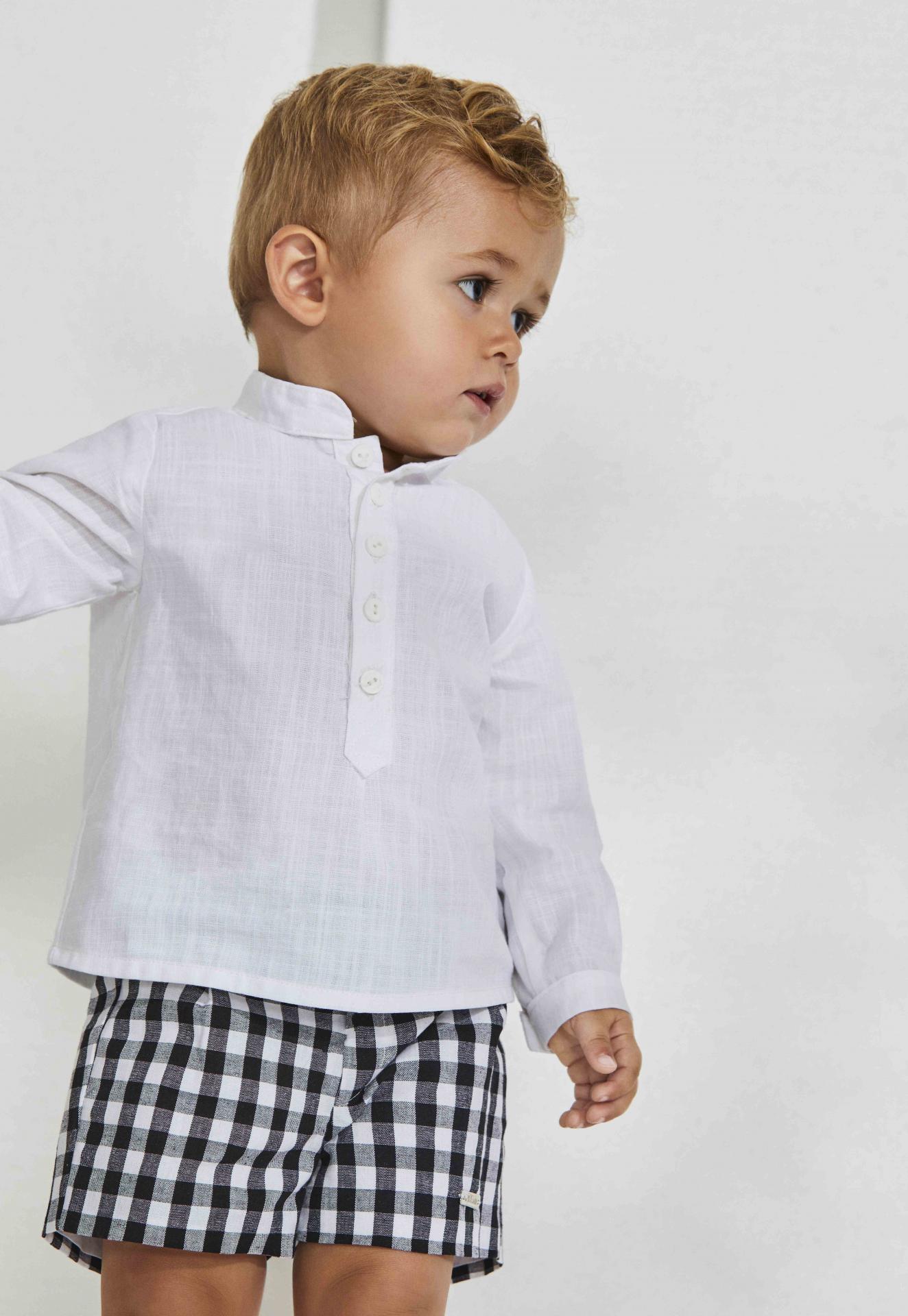 Nekenia Conjunto Infantil Bébe Camisa Blanca Cuello Mao Pantalón Corto Cuadros Vichy Negro 23VC27