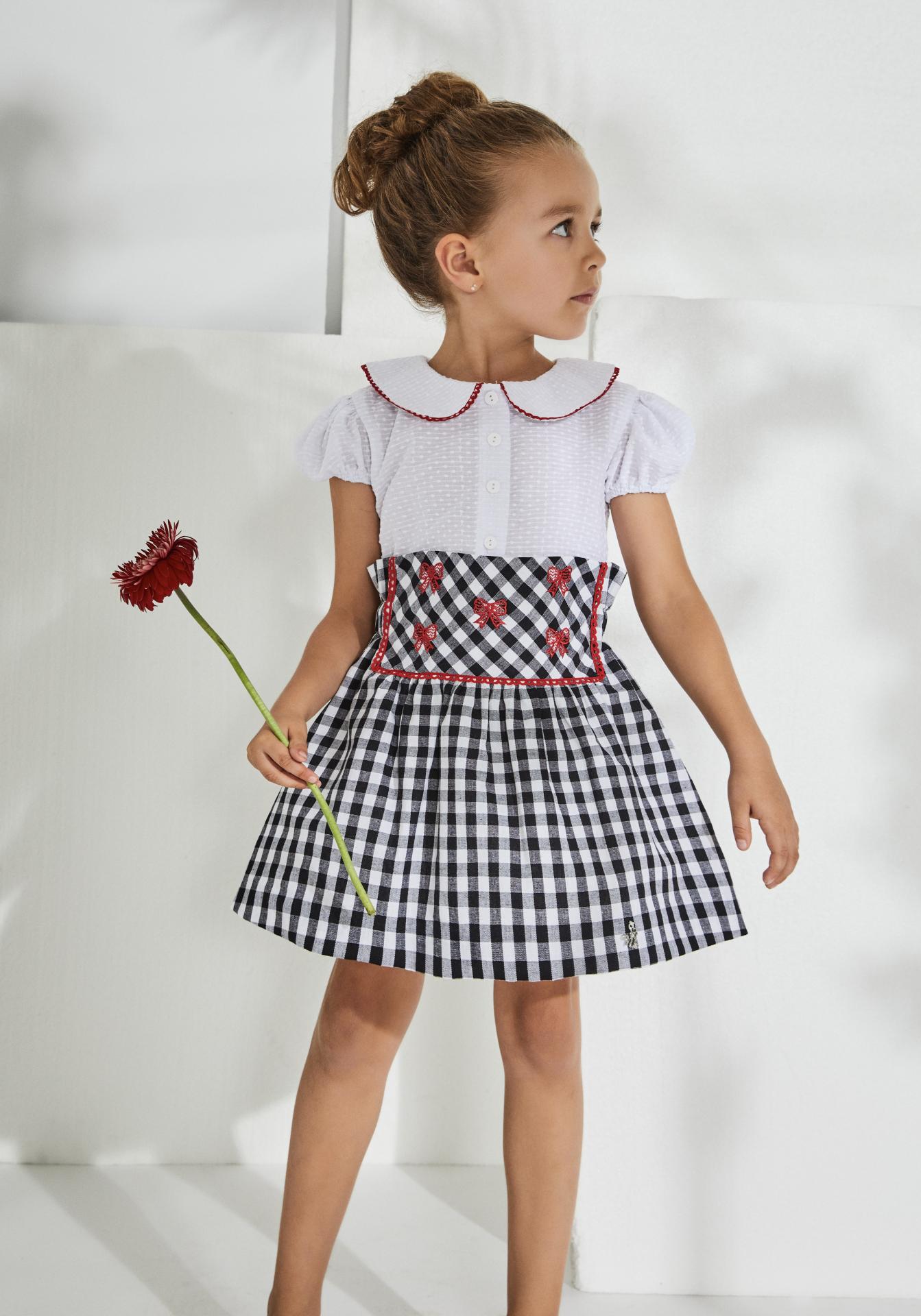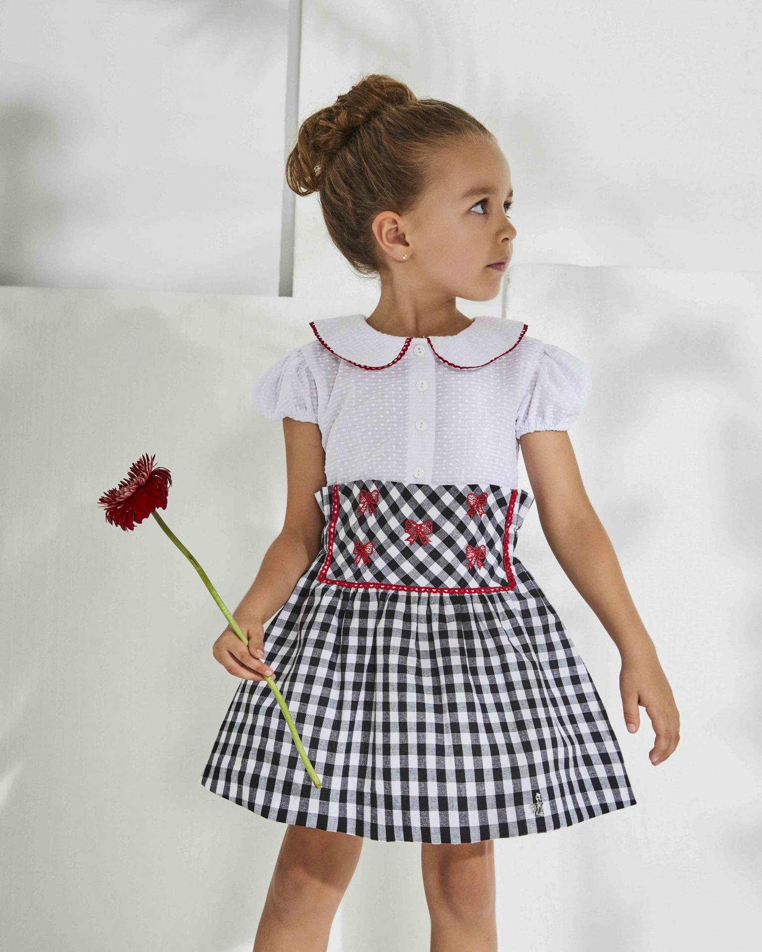 Nekenia Vestido Infantil Vuelo Cuerpo Piqué Blanco Cuello Bebé Falda Cuadros Negro Bordados Rojo 2321807