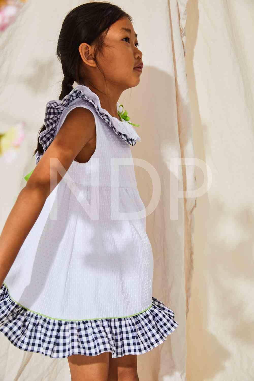 Nekenia Vestido Infantil Piqué Blanco Volantes Cuadros Marino Vivo Verde Lima 23VV20
