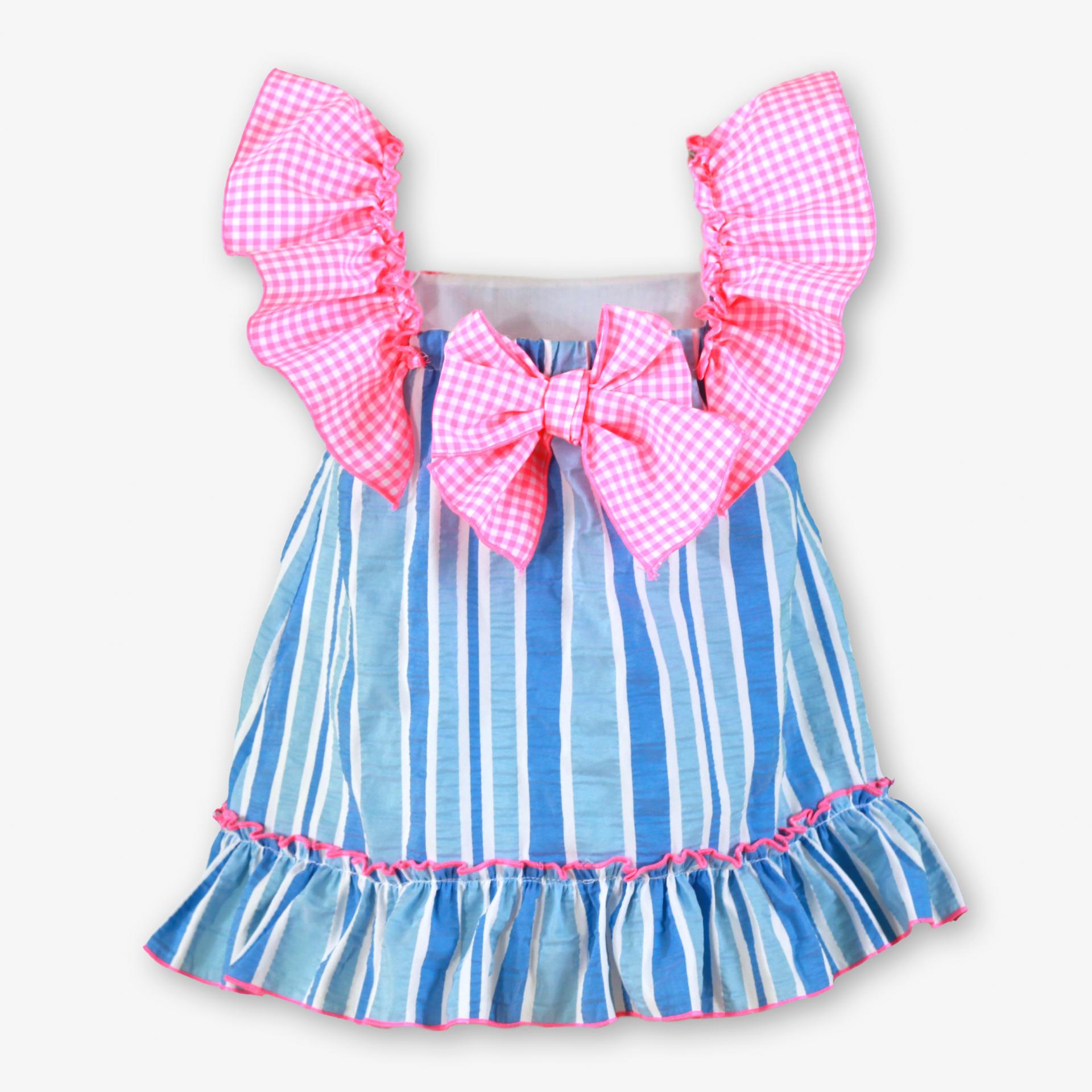 Miranda vestido Bebe Rayas Azul Volante Cuadro Rosa Fluor "Flor de Loto" 0518/V