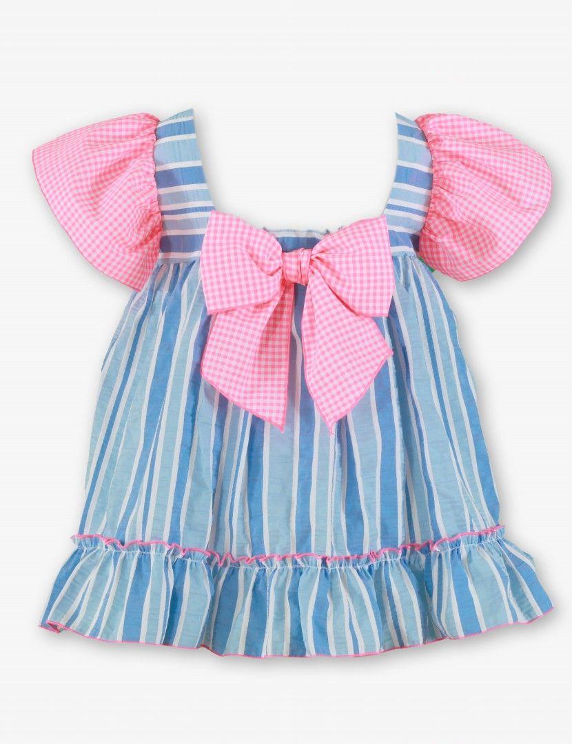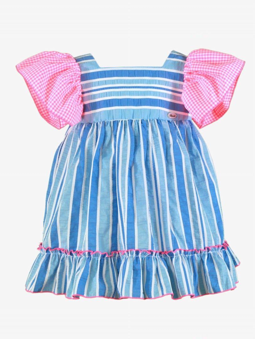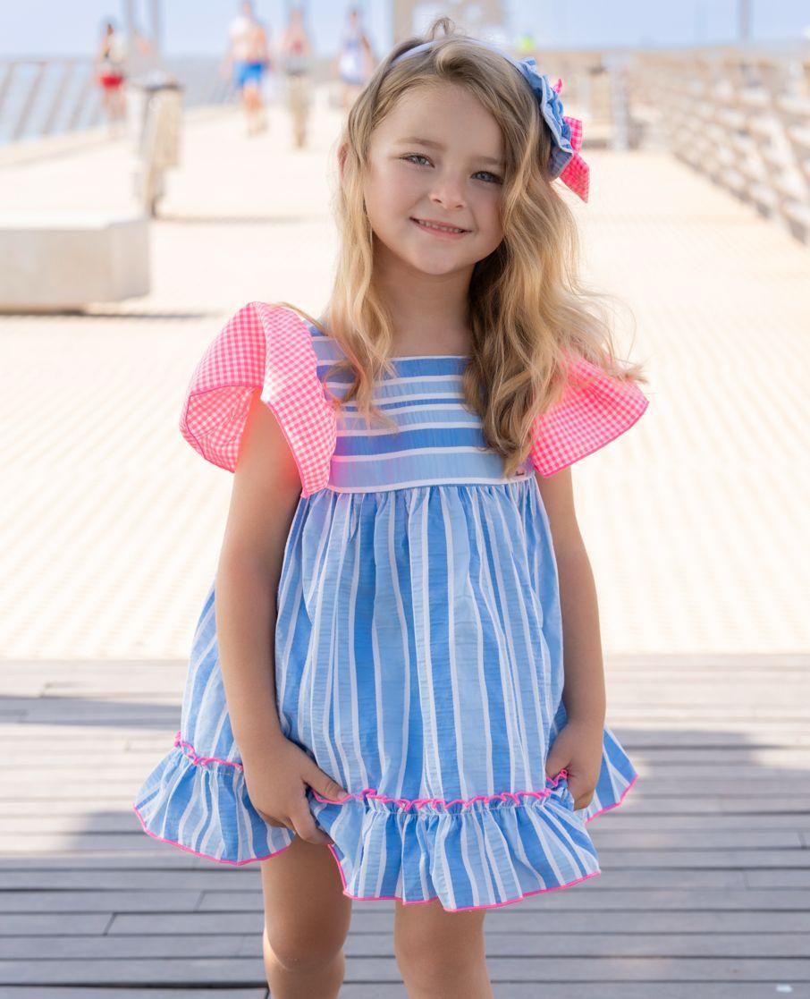 Miranda vestido Infantil Rayas Azul Volante Cuadro Rosa Fluor "Flor de Loto" 0617/V