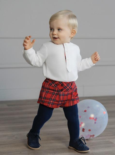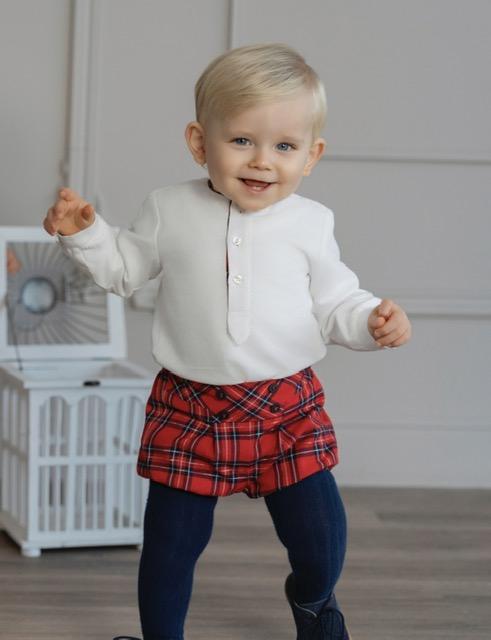 Miranda Conjunto Bebe Niño Camisa Blanca M/C Pantalón Cuadro Escocés "Ginger" 0132/23