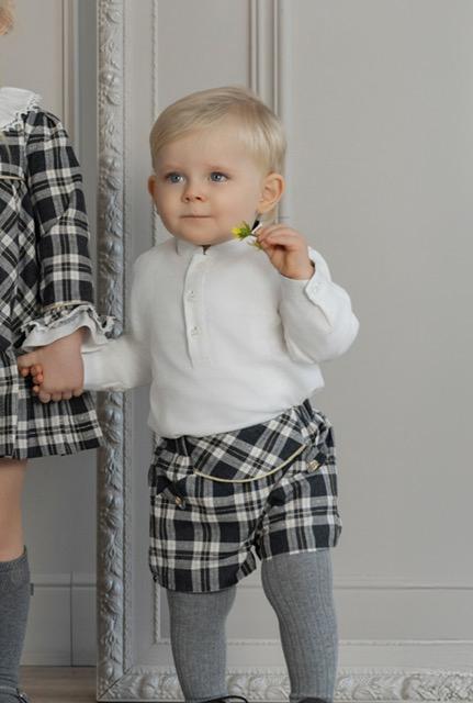Miranda Conjunto Bebe Niño Camisa Blanca M/C Pantalón Cuadros Addison" 0144/23