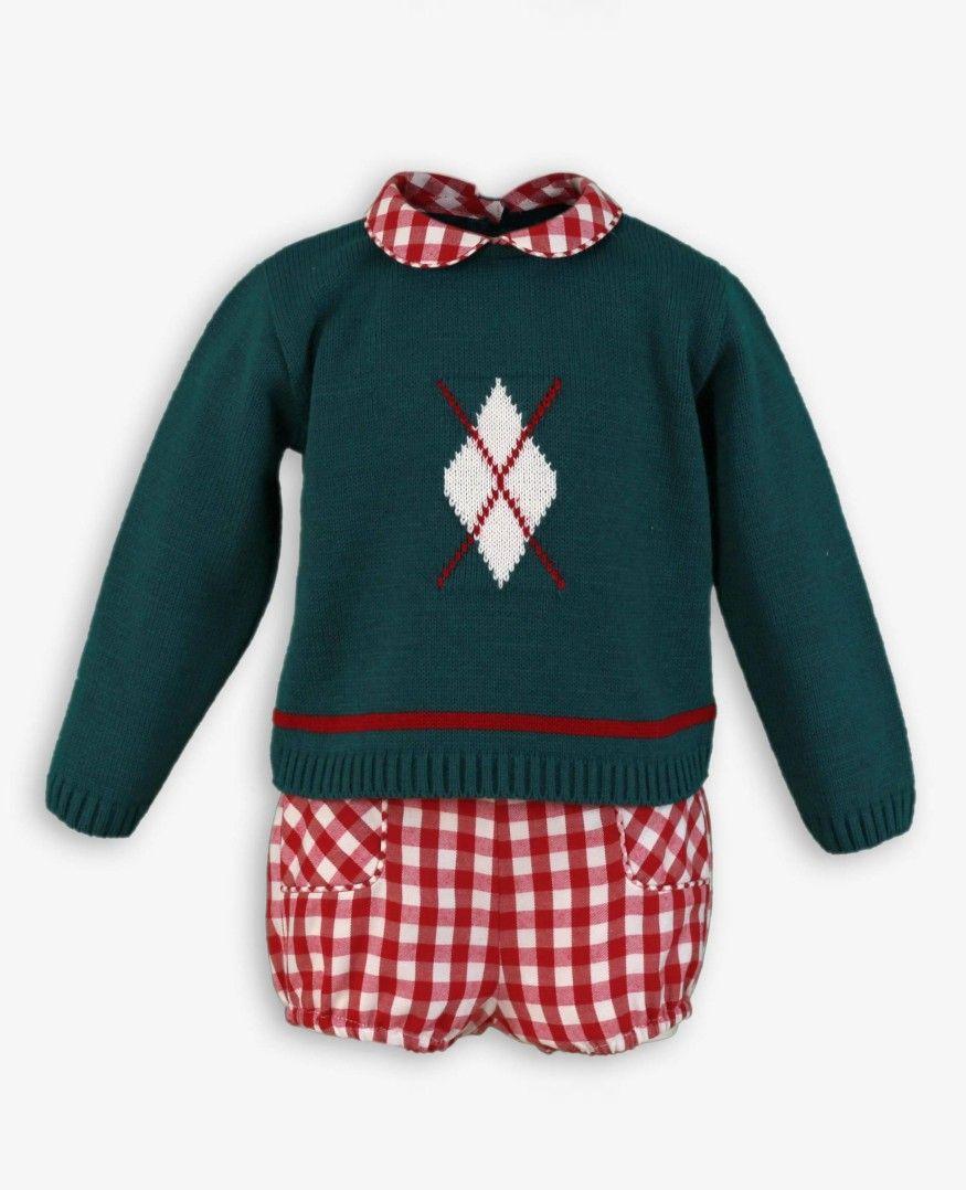 Miranda Conjunto Bebe Niño Jersey Verde Rombo Pantalón Cuadros "Willow" 0506/23