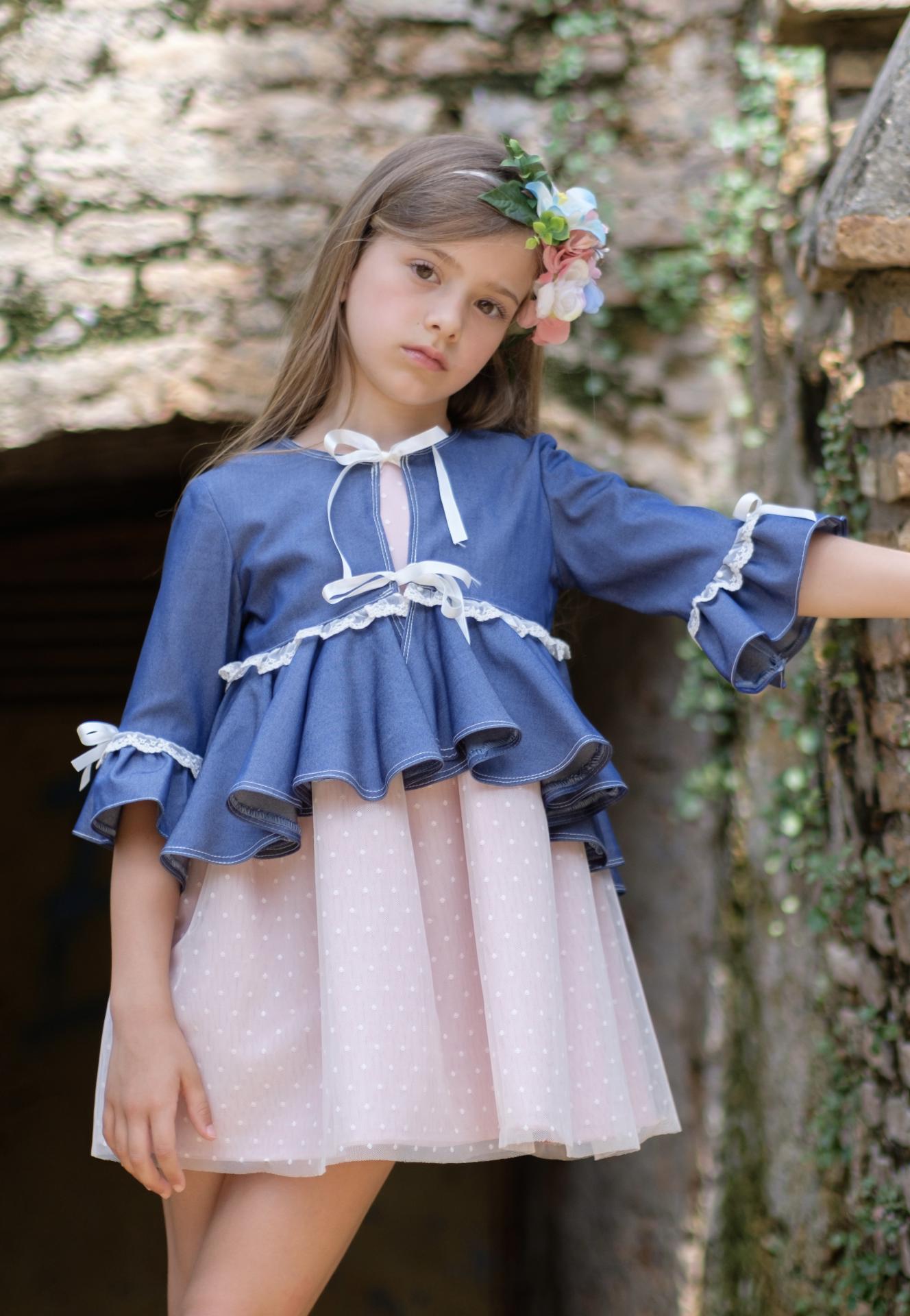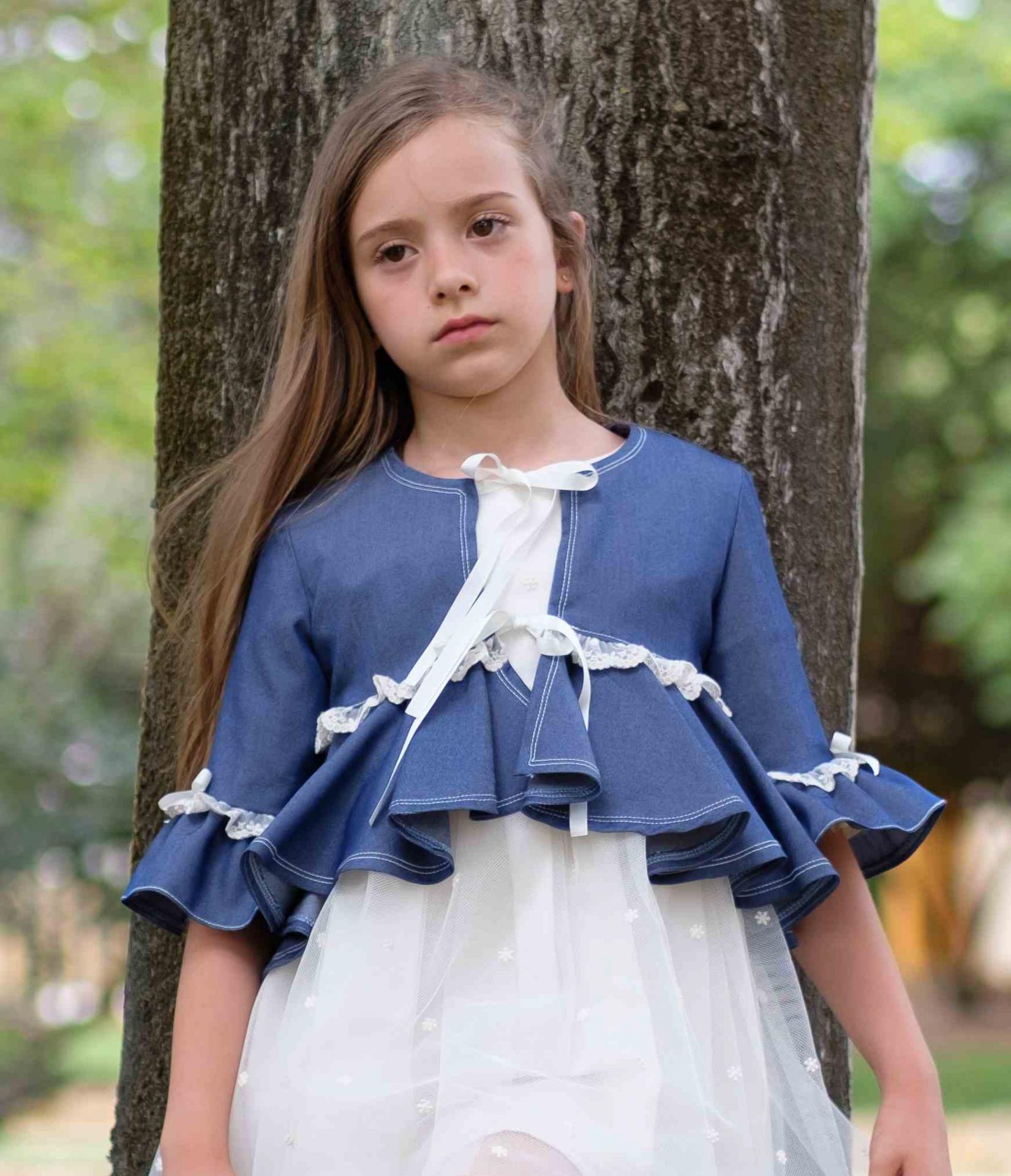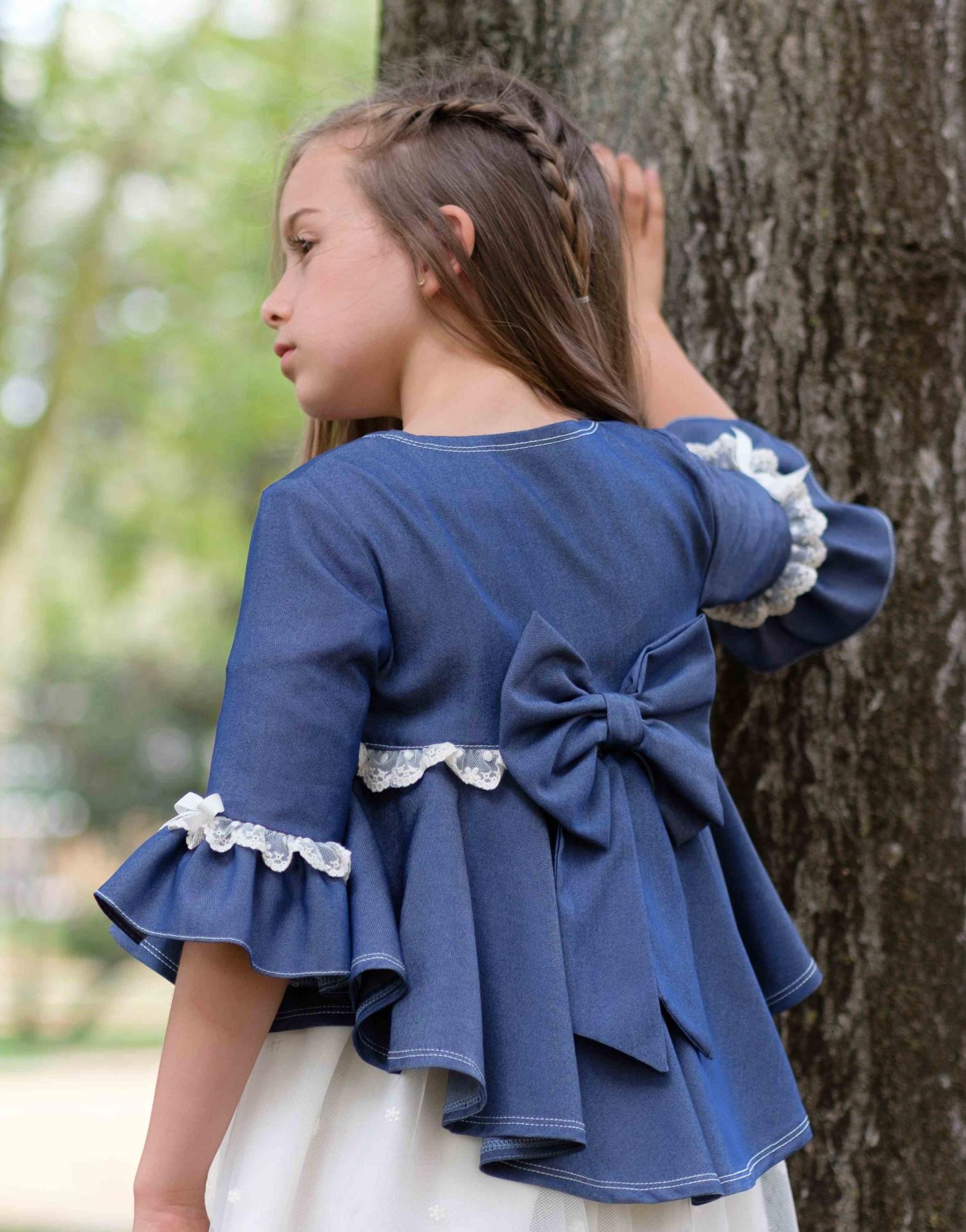 Nekenia Chaqueta Infantil Vaquera Ceremonia Volante Lazada Espalda Encaje 2421701
