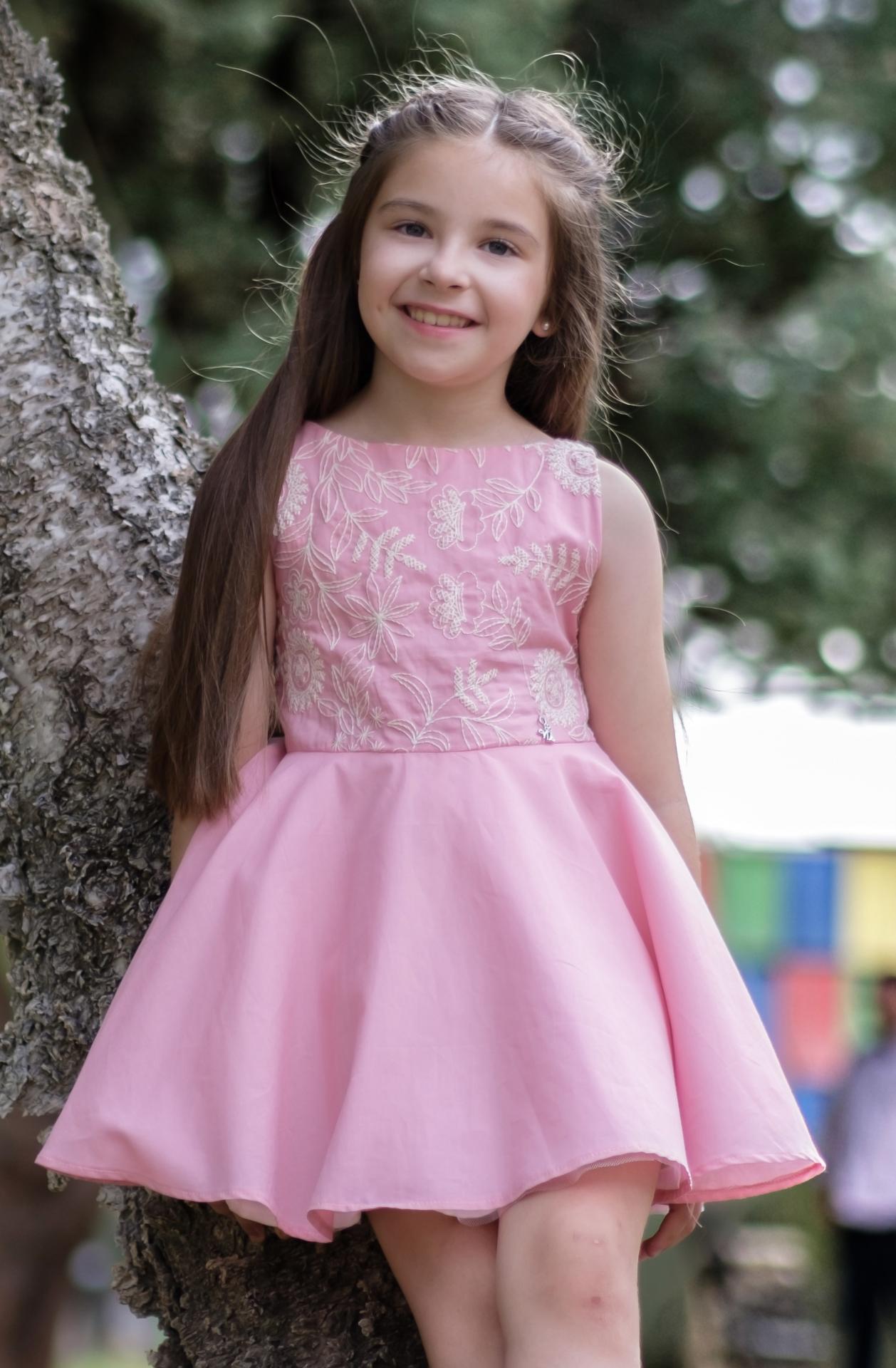 Nekenia Vestido Infantil Vuelo Popelin Rosa Cuerpo Bordado Floral Escote Espalda 2421817