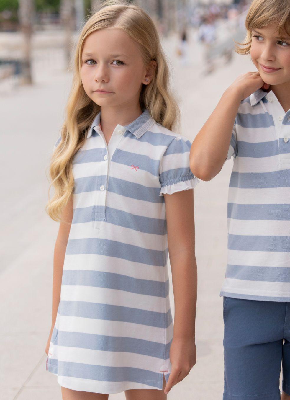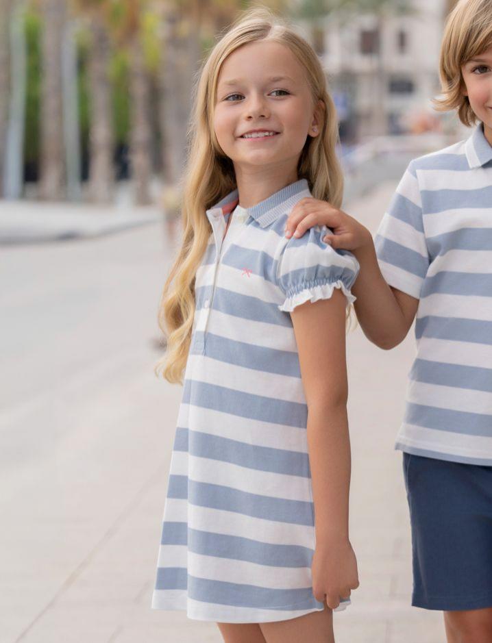 Miranda Vestido Infantil Tipo Polo Rayas Azules "Astromelia" 1400/V