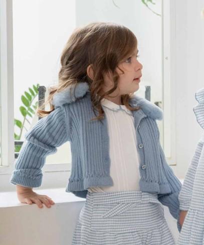 Miranda Chaqueta Punto Cuello Pelo Celeste "Lucy" 0620/CH