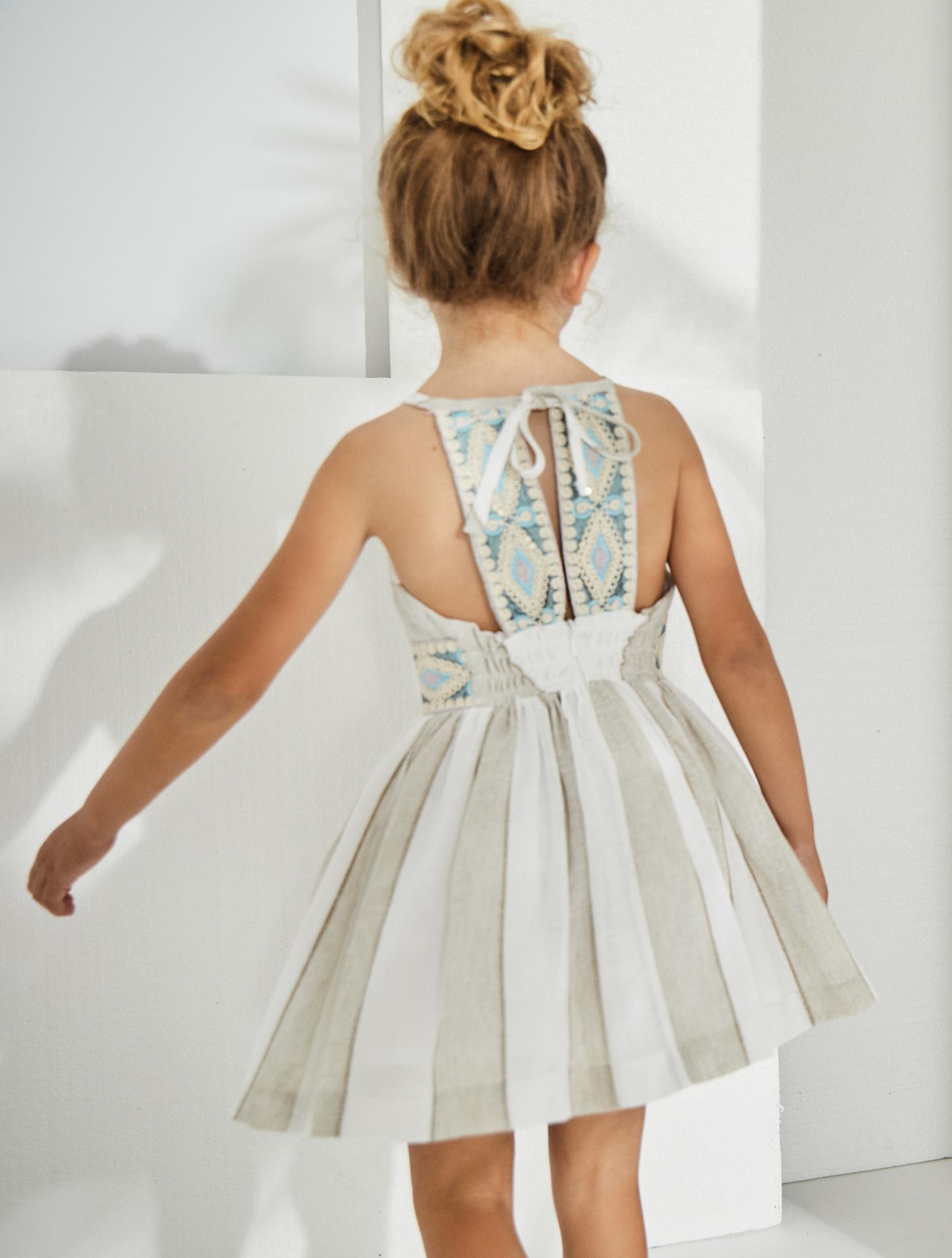 Nekenia Vestido Infantil Rayas Beig Bordado Cintura Escote Halter Espalda 2321803