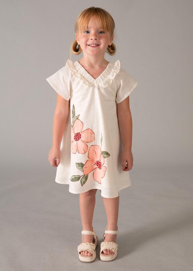 Mayoral Vestido Lino Flores 26-03931-028 Garbanzo