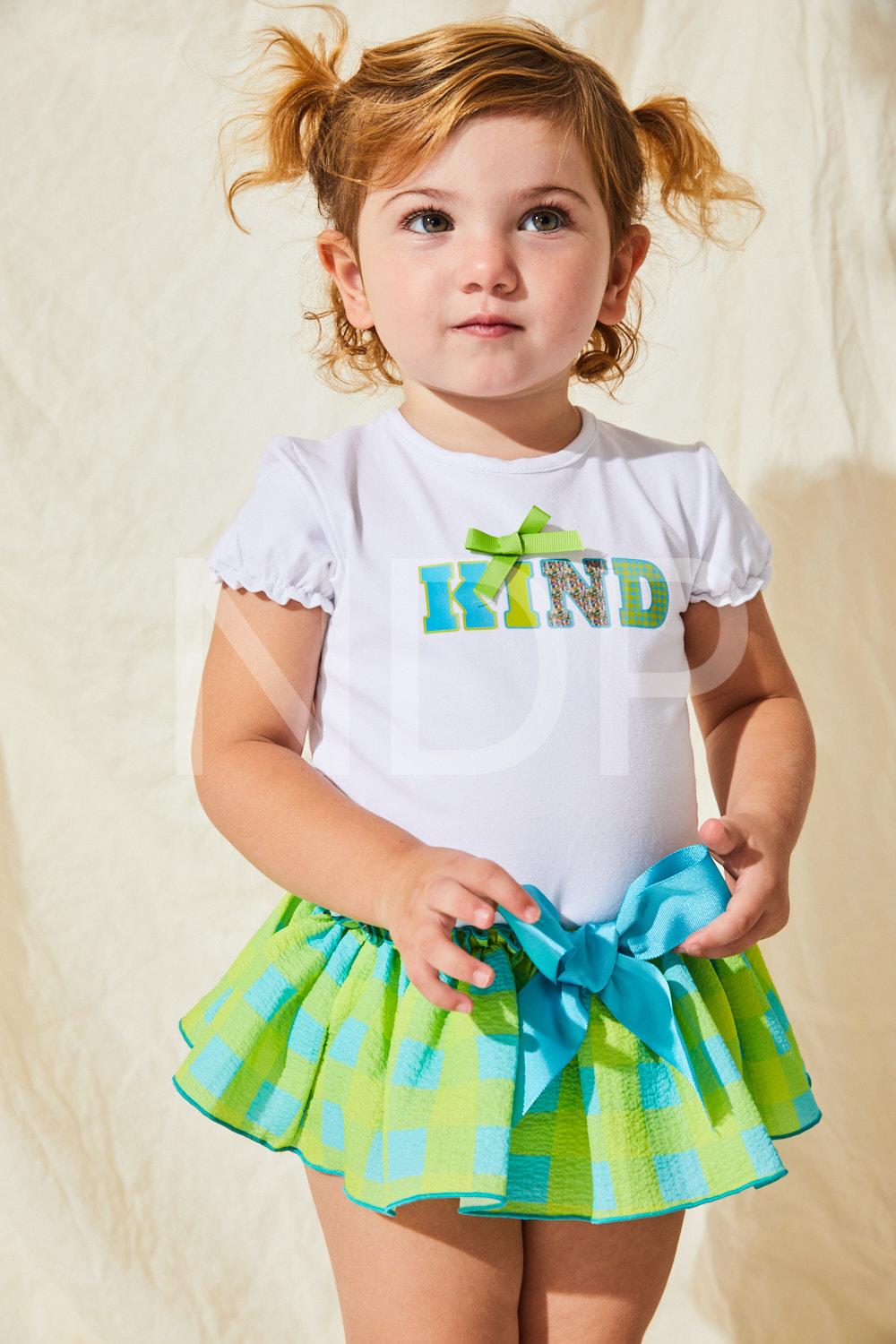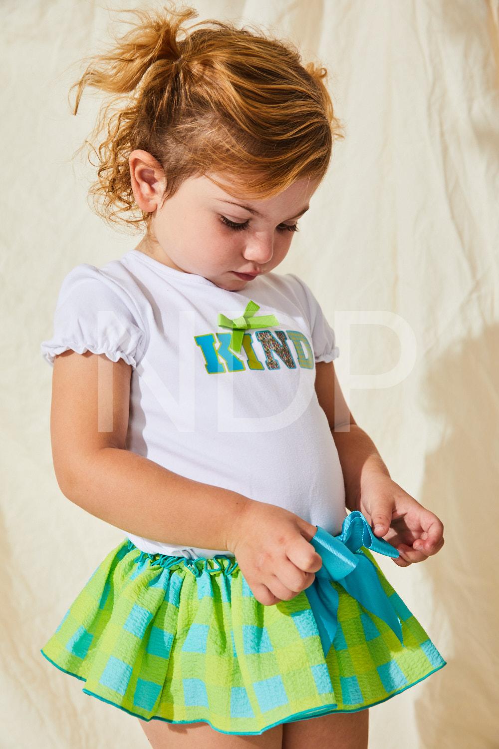 Nekenia Conjunto Bebé Camiseta "Kind" Braguita Cuadros Verde Turquesa Lazada 23VC13