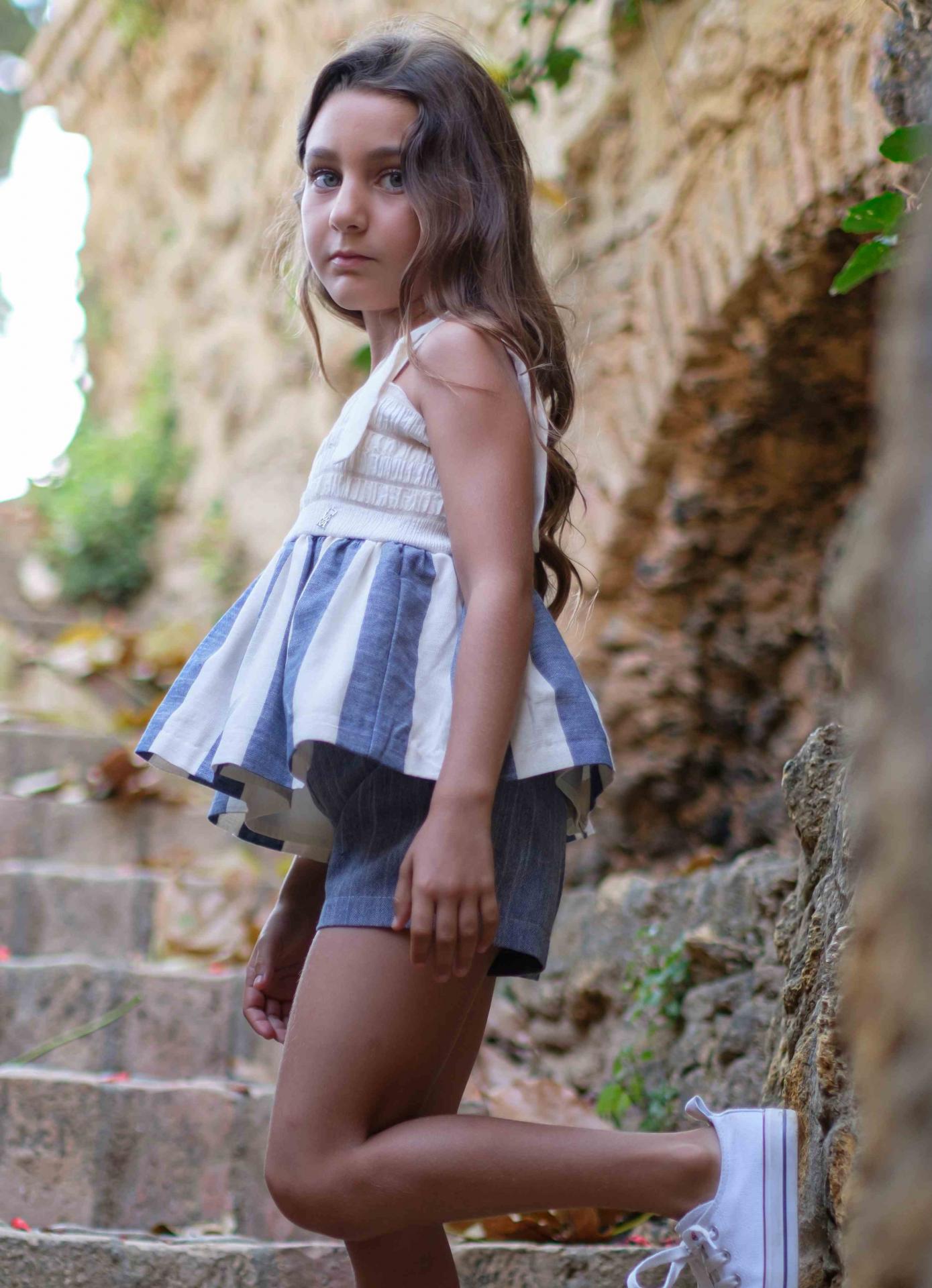 Nekenia Conjunto Infantil Top Tirante Cuerpo Marfil Pantalón Corto Azul 24VC04