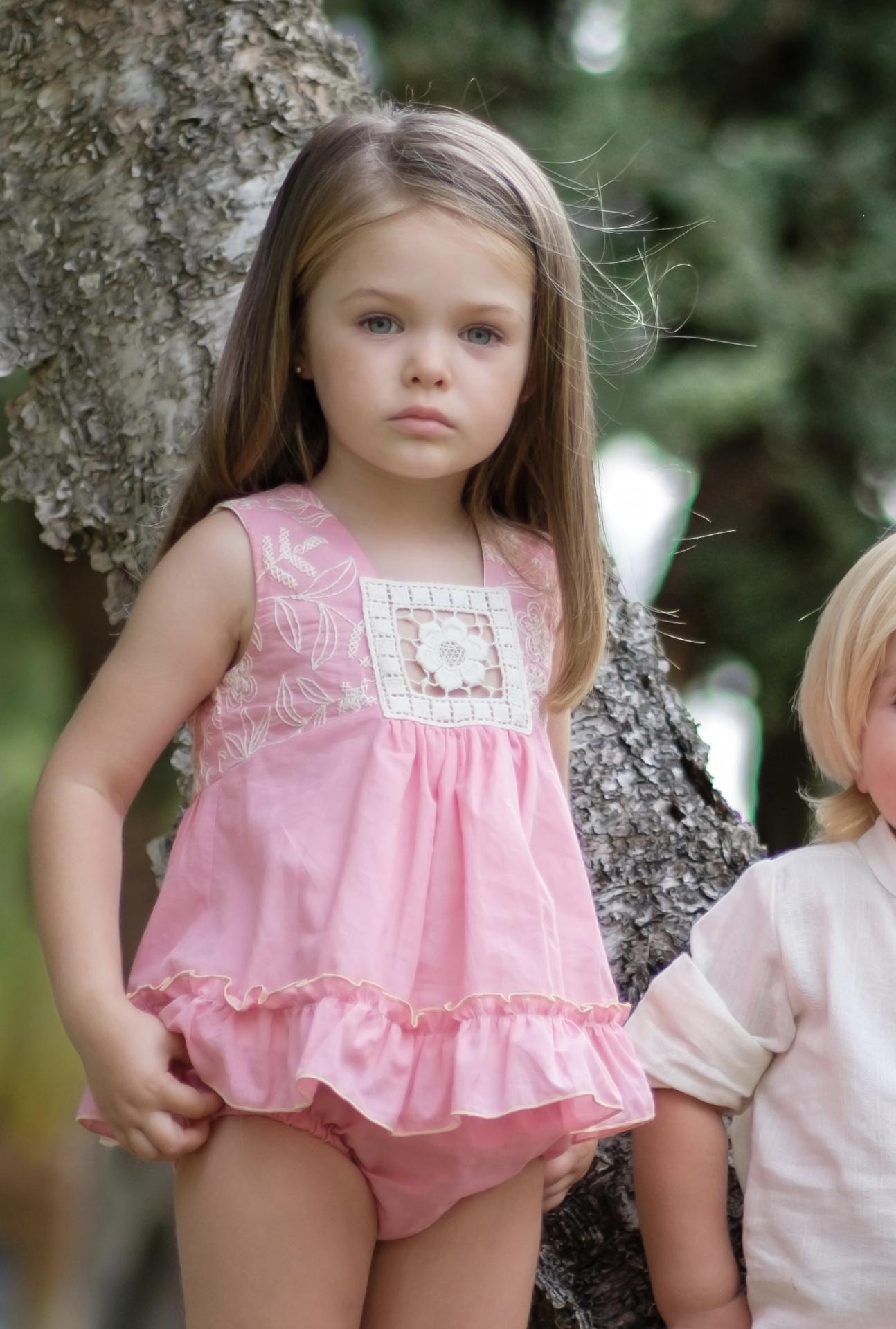 Nekenia Vestido Bebé Vuelo Volante Popelín Rosa Aplicación Floral con Braguita 2421012