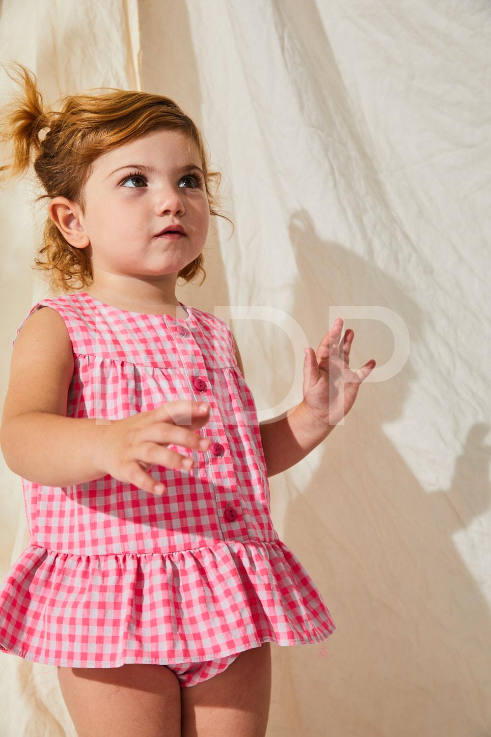 Nekenia Vestido Bebé Vuelo con Braguita Cuadro Vichy Fucsia 23VC12
