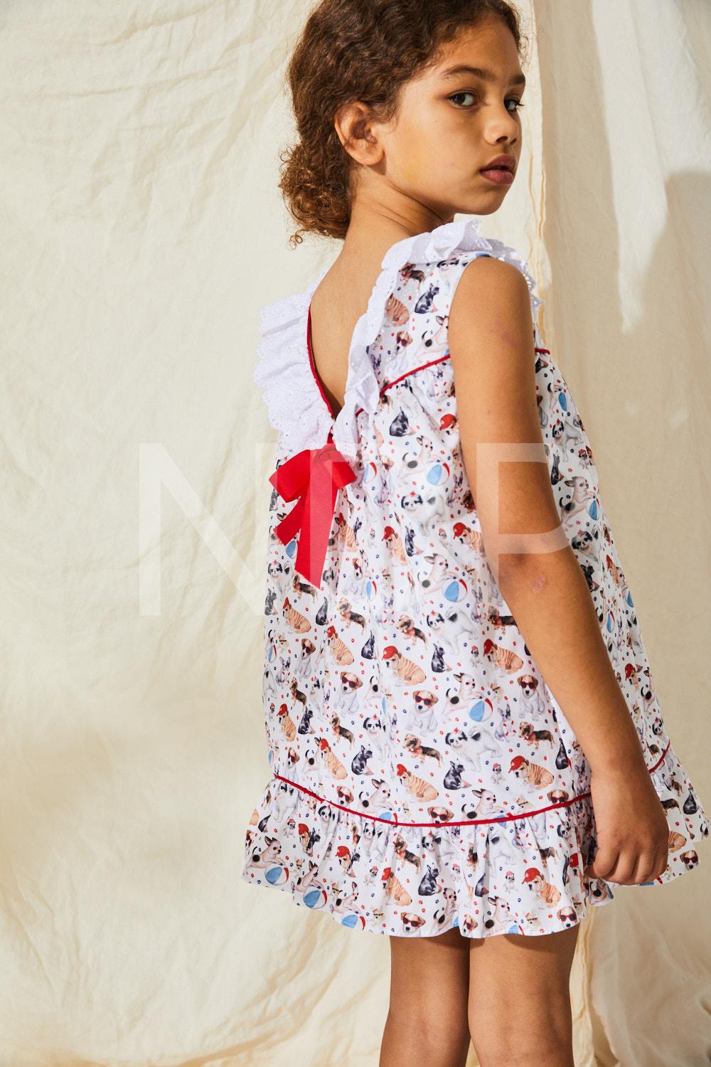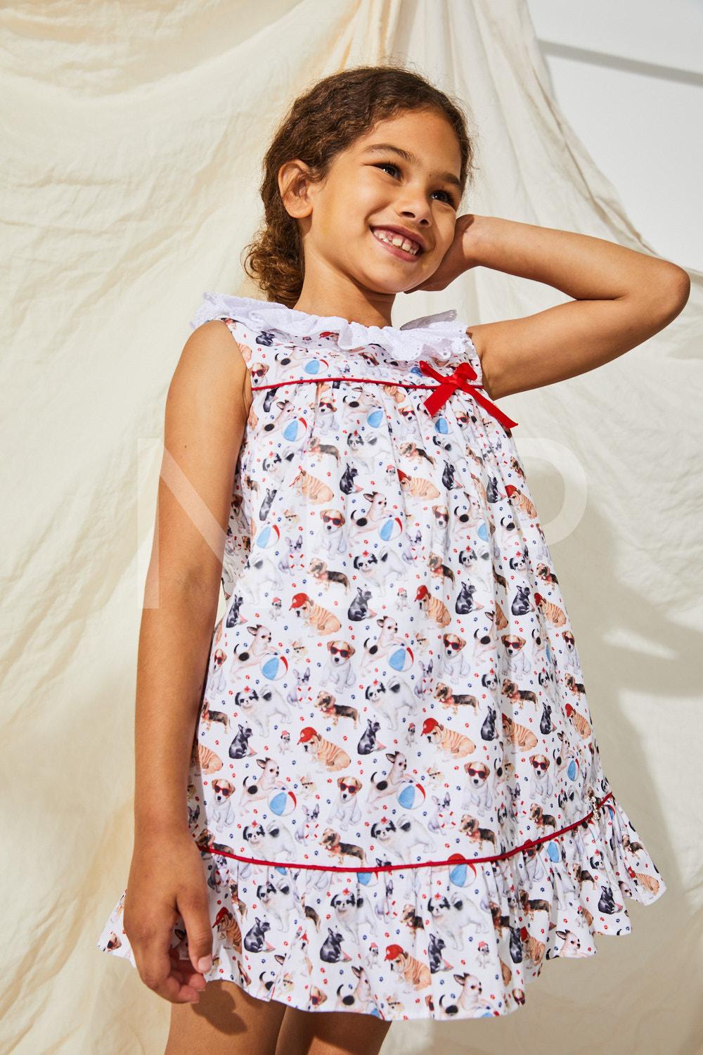 Nekenia Vestido Infantil Estampado Perritos Escote Espalda Vivo Rojo 23VV33