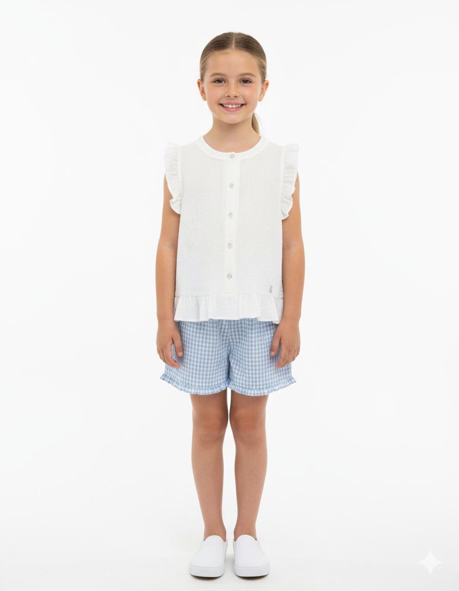 Nekenia Conjunto Infantil Blusa Plumeti Short Cuadros Vichy Verde Volante Bajo 24VC01 Celeste