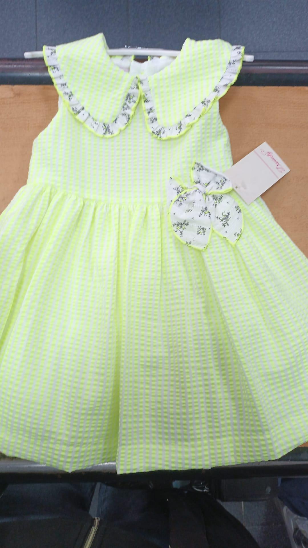 Daniesty vestido Infantil Estampado Cuadros Vichy Neon Detalles Flores 002