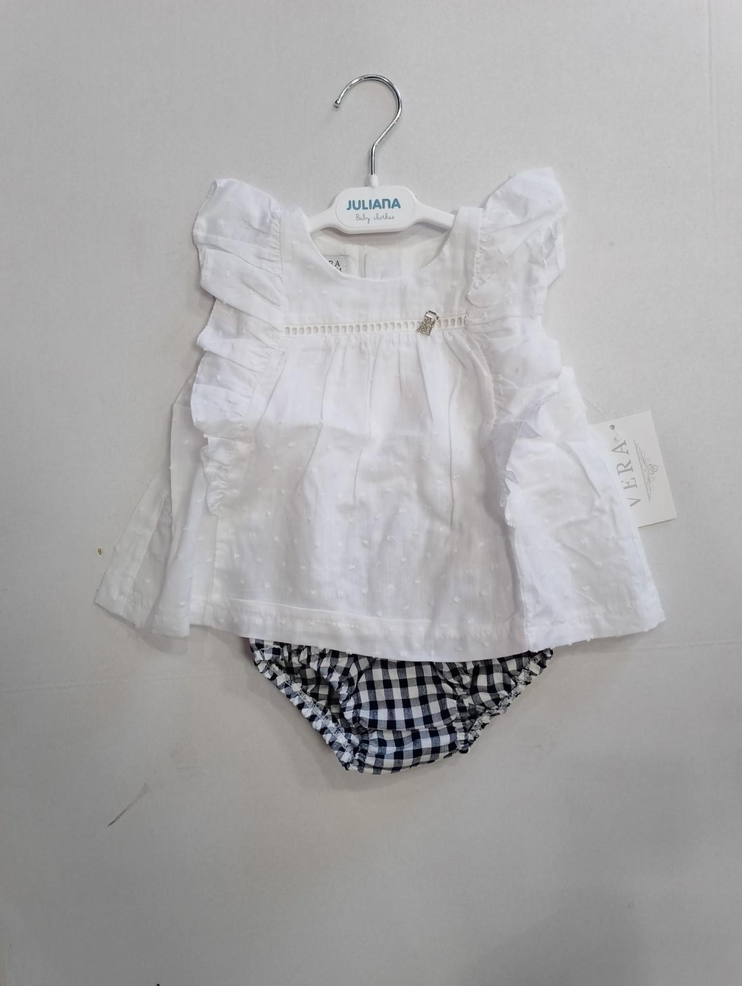 Nekenia Conjunto Bebé Blusa Sin Manga Blanca Braguita Cuadros 24VC06 Marino