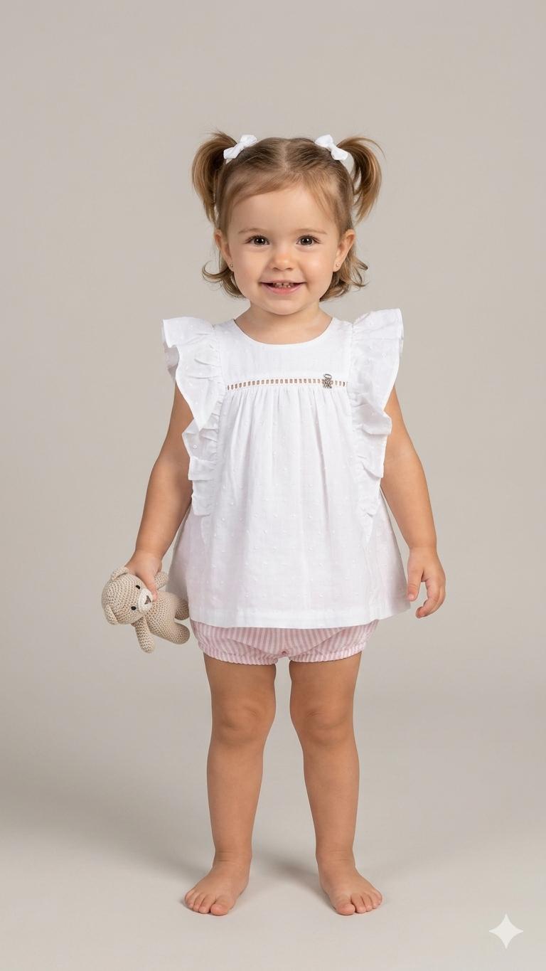 Nekenia Conjunto Bebé Blusa Sin Manga Blanca Braguita Rayas 24VC06 Rosa