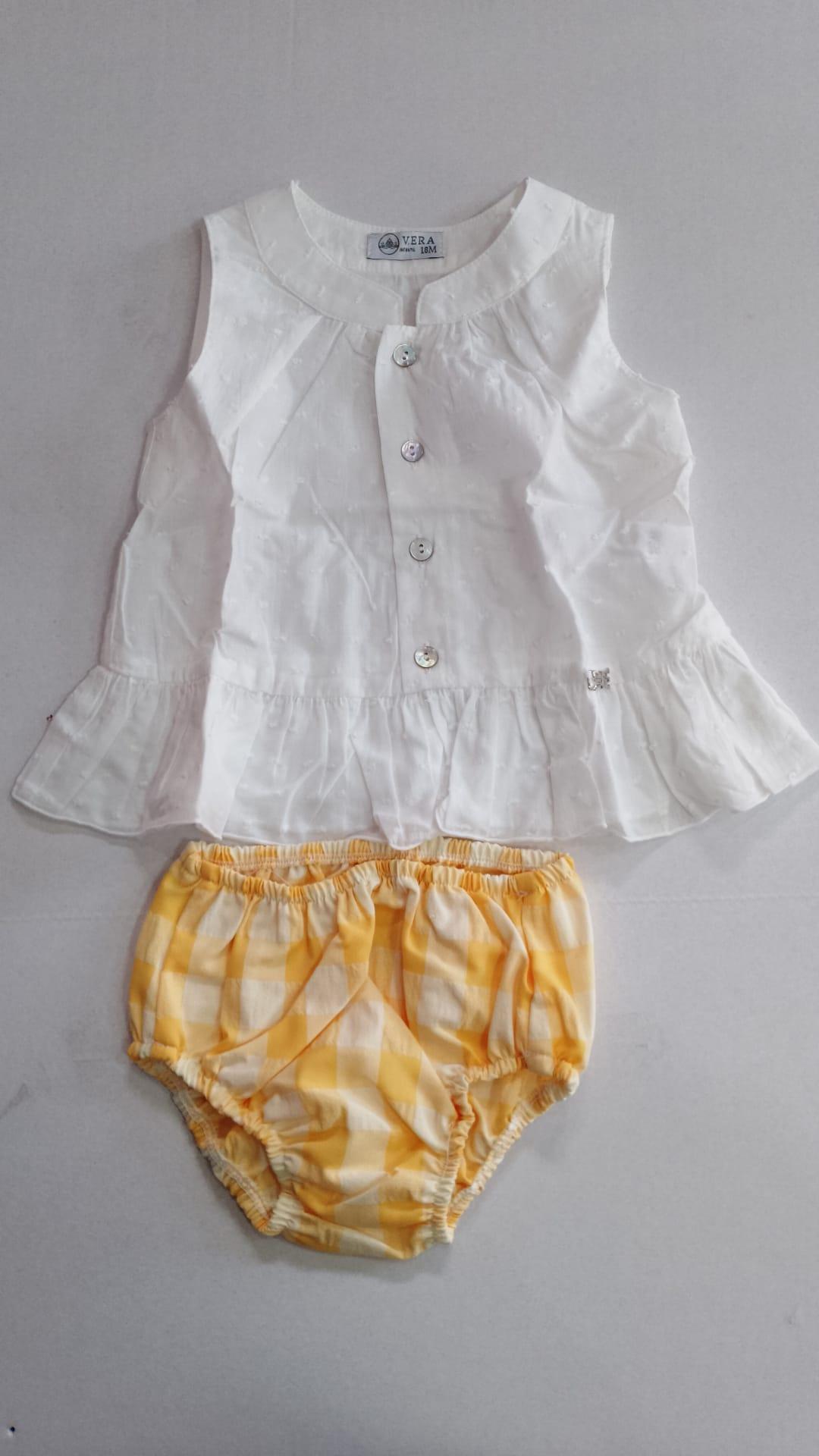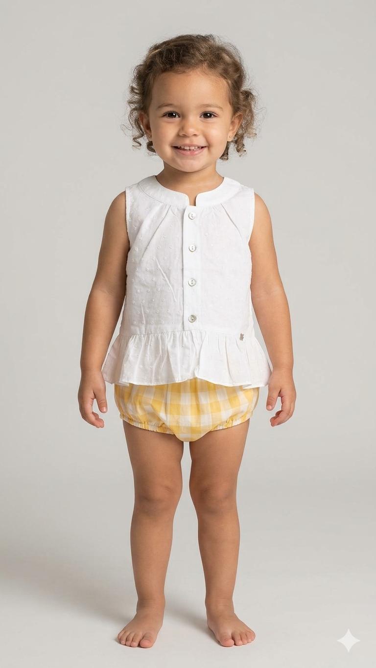 Nekenia Conjunto Bebé Blusa Sin Manga Plumeti Braguita Cuadros 24VC05 Amarillo