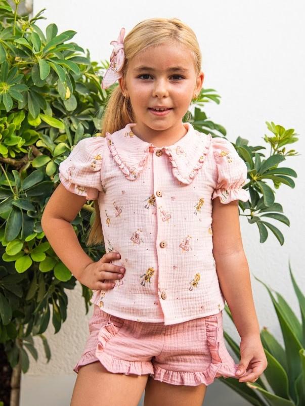 Daniesty Conjunto Infantil Short Rosa Blusa Estampada Robots Familia Marte 005