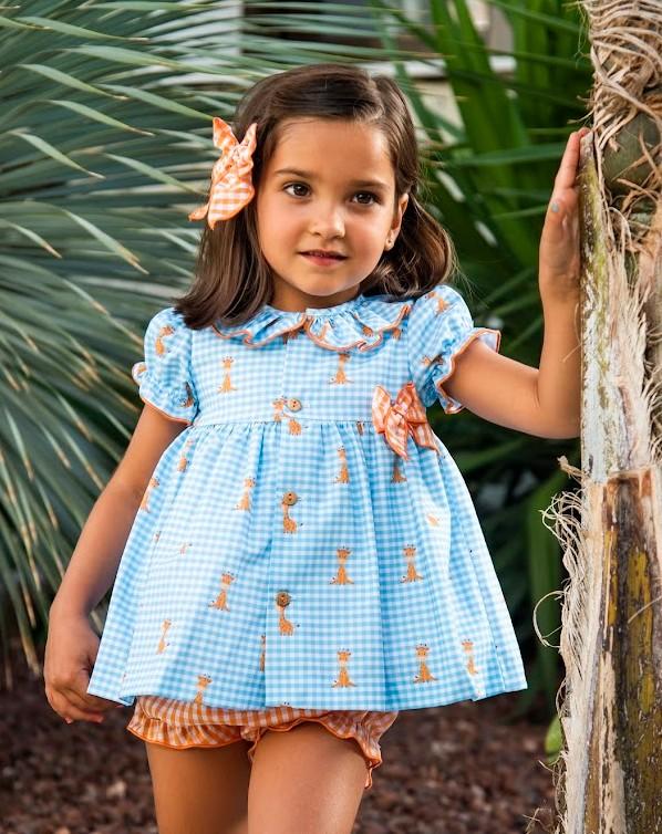 Daniesty Jesusito Bebé Pololo Cuadro Vichy Naranja Vestido Cuadro vichy Azul Estampado Girafa Familia Africa 001