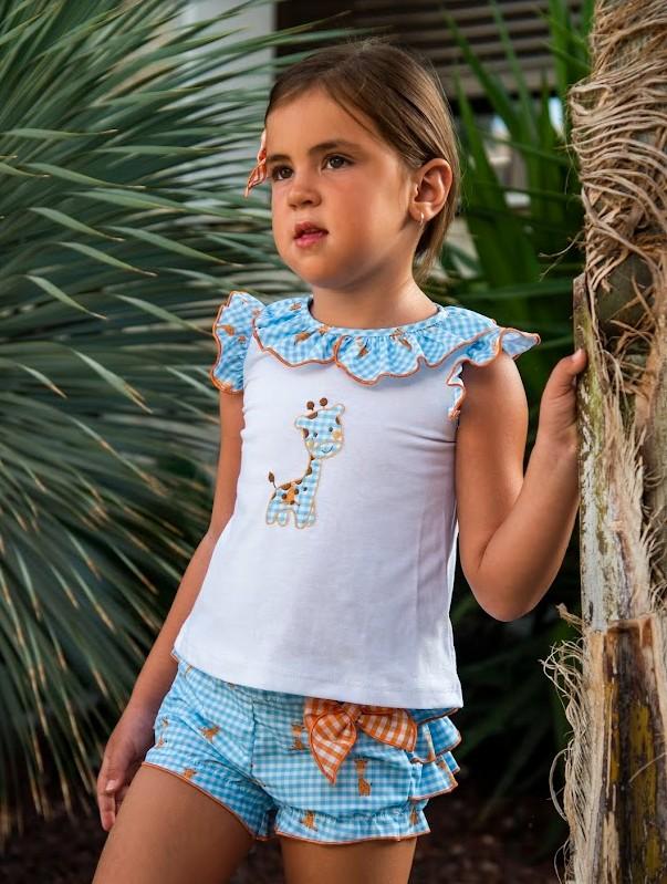 Daniesty Jesusito Bebé Pololo Cuadro Vichy Azul Camiseta Blanca Jirafa Familia Africa 011