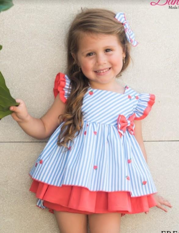Daniesty Jesusito Bebé Braguita Naranja Volante Rayas Vestido Estampado rayas y Fresas Familia Fresia 001