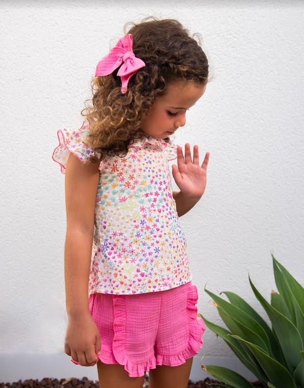 Daniesty Conjunto Short Rosa Blusa Flores Familia Viena 005
