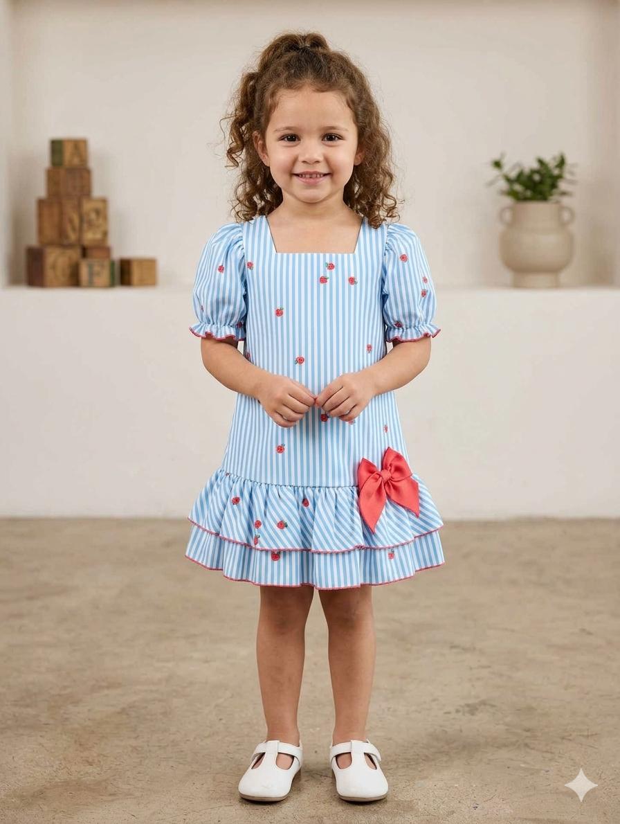 4 añosDaniesty Vestido Infantil Estampado rayas y Fresas Lazada Roja Corte Evase Volantes Bajo Familia Fresia 004
