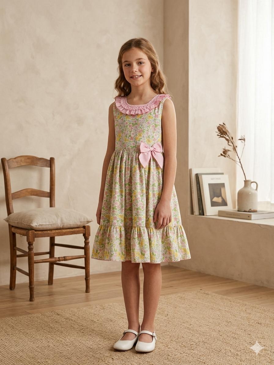 Daniesty Vestido Infantil Estampado Flores Lazada Cuadro Vichy Familia Candy 002