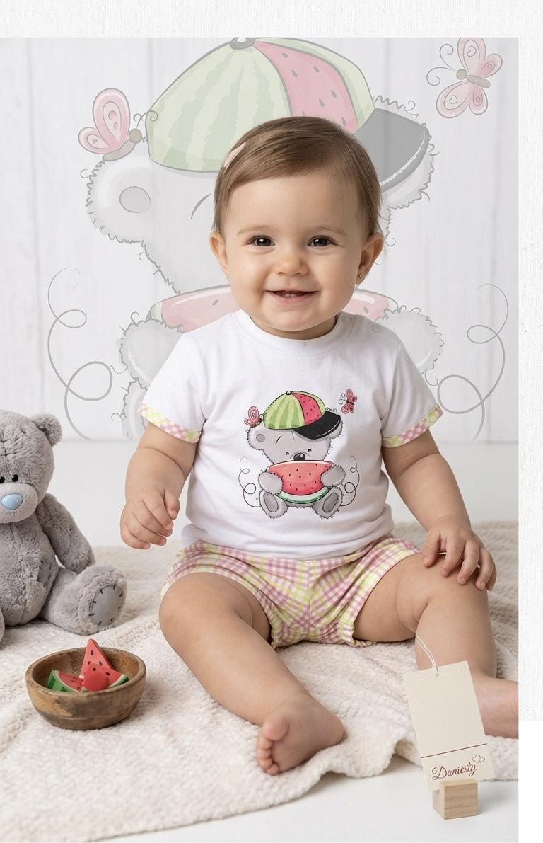 Daniesty Conjunto Niño Pantalon Cuadros camiseta Osito Sandia Familia Martha 007