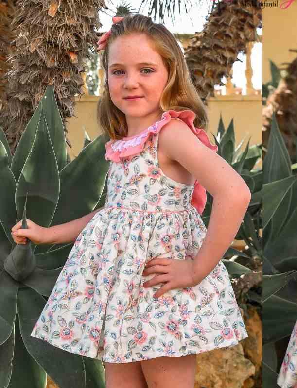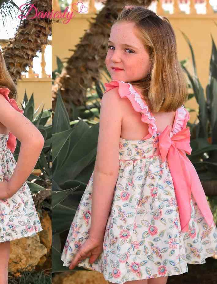 Daniesty Vestido Infantil Vuelo estampado Flores Volante Rosa Familia Garden 002