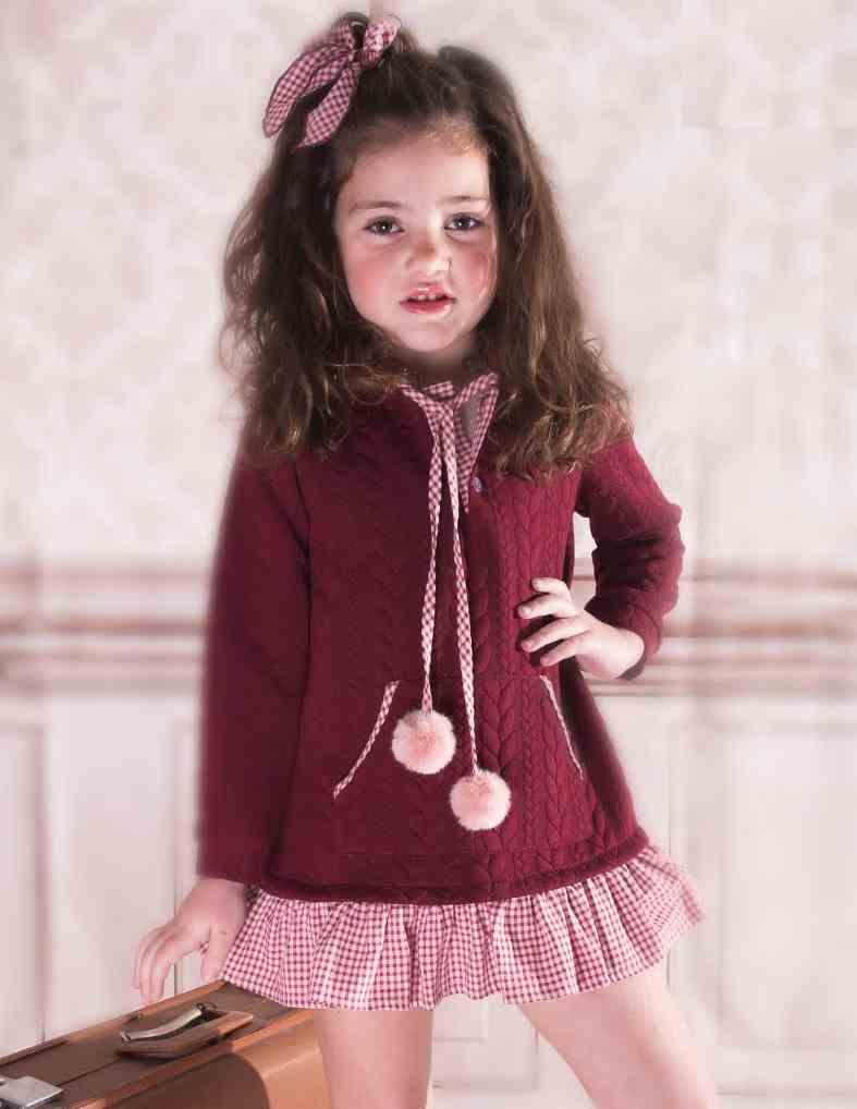 Daniesty Vestido Infantil Evase Granate Capucha Volante Cuadro Vichy Familia Belen 004