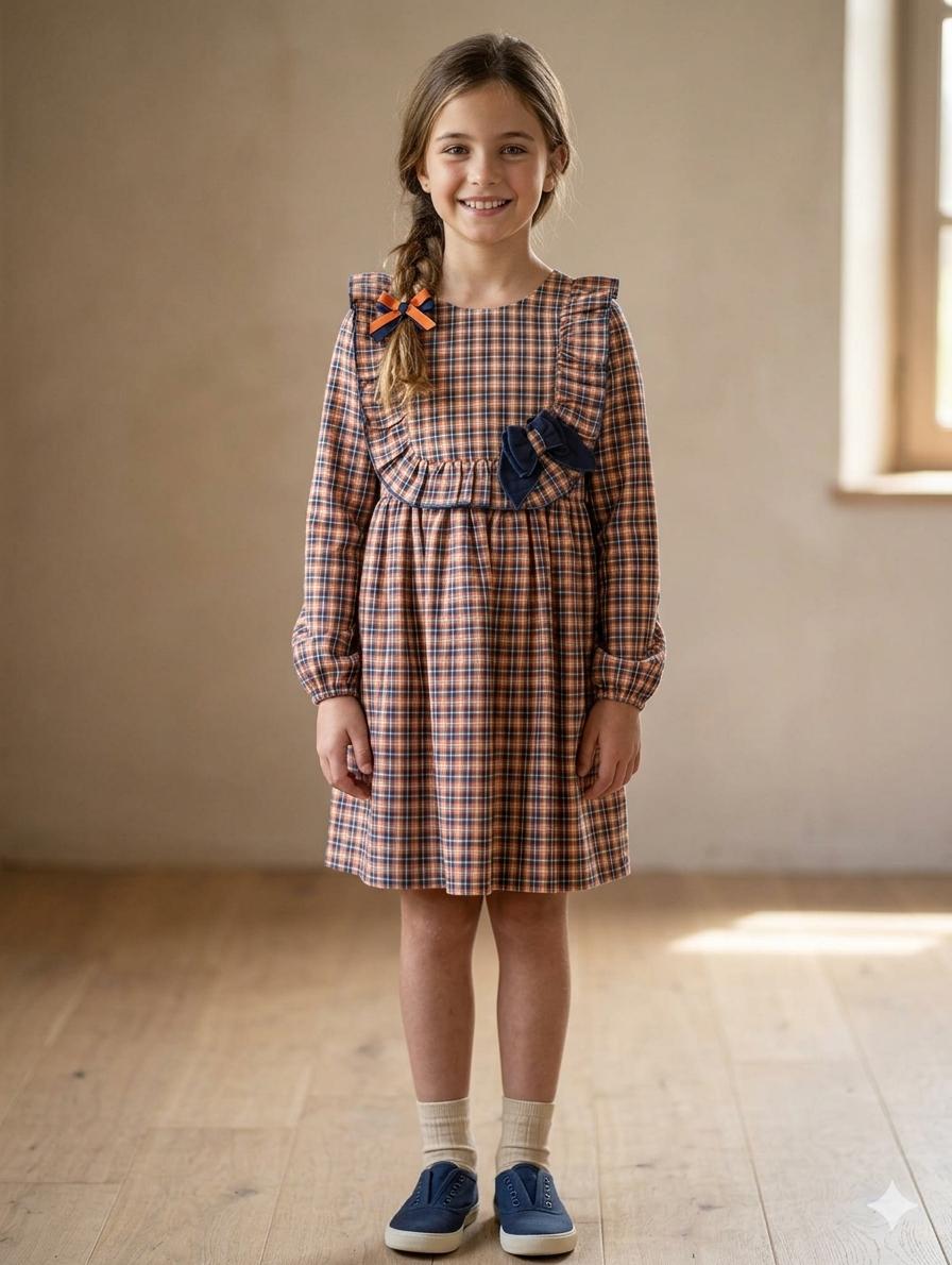 Daniesty Vestido Infantil de Cuadros Marino y Caldera Lazada Marino Familia Gabriela 002