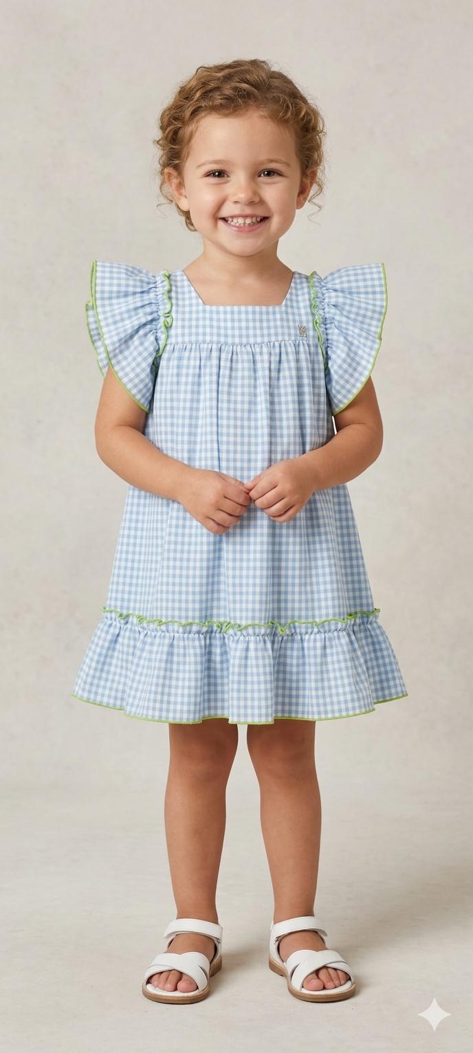 Nekenia Vestido Infantil Sapito Cuadros Vichy Pistacho Volantes Lazada Vivo Azul 24VV06