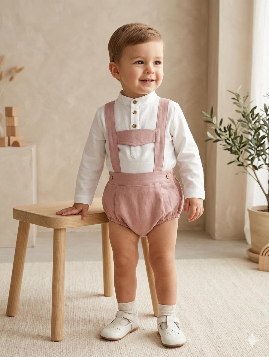 Vera by Nekenia Conjunto Bébe Camisa Blanca Cuello Mao Peto Rosa 2421113