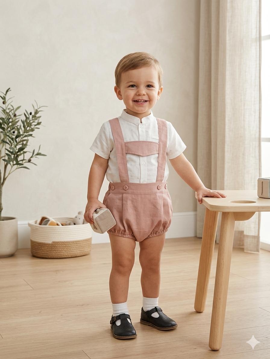 Nekenia Conjunto Bébe Camisa Blanca Manga Corta Cuello Mao Peto Rosa 2421113
