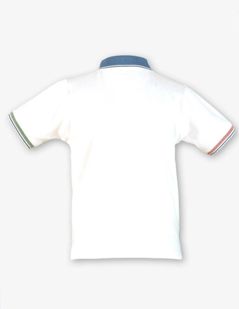 Elegante polo de manga corta para niño de la marca Miranda. Confeccionado con diseño de color blanco con detalles de colores. Cierra en el delantero con botonadura de 3 botones.