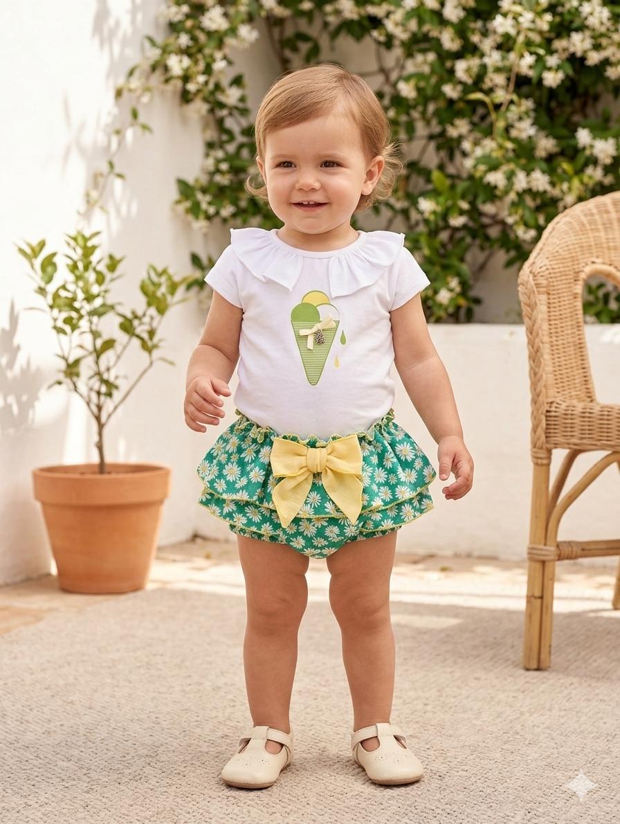 Nekenia Conjunto Bébe Niña Camiseta Helado Braguita Estampada Lazada Amarilla 24CB29