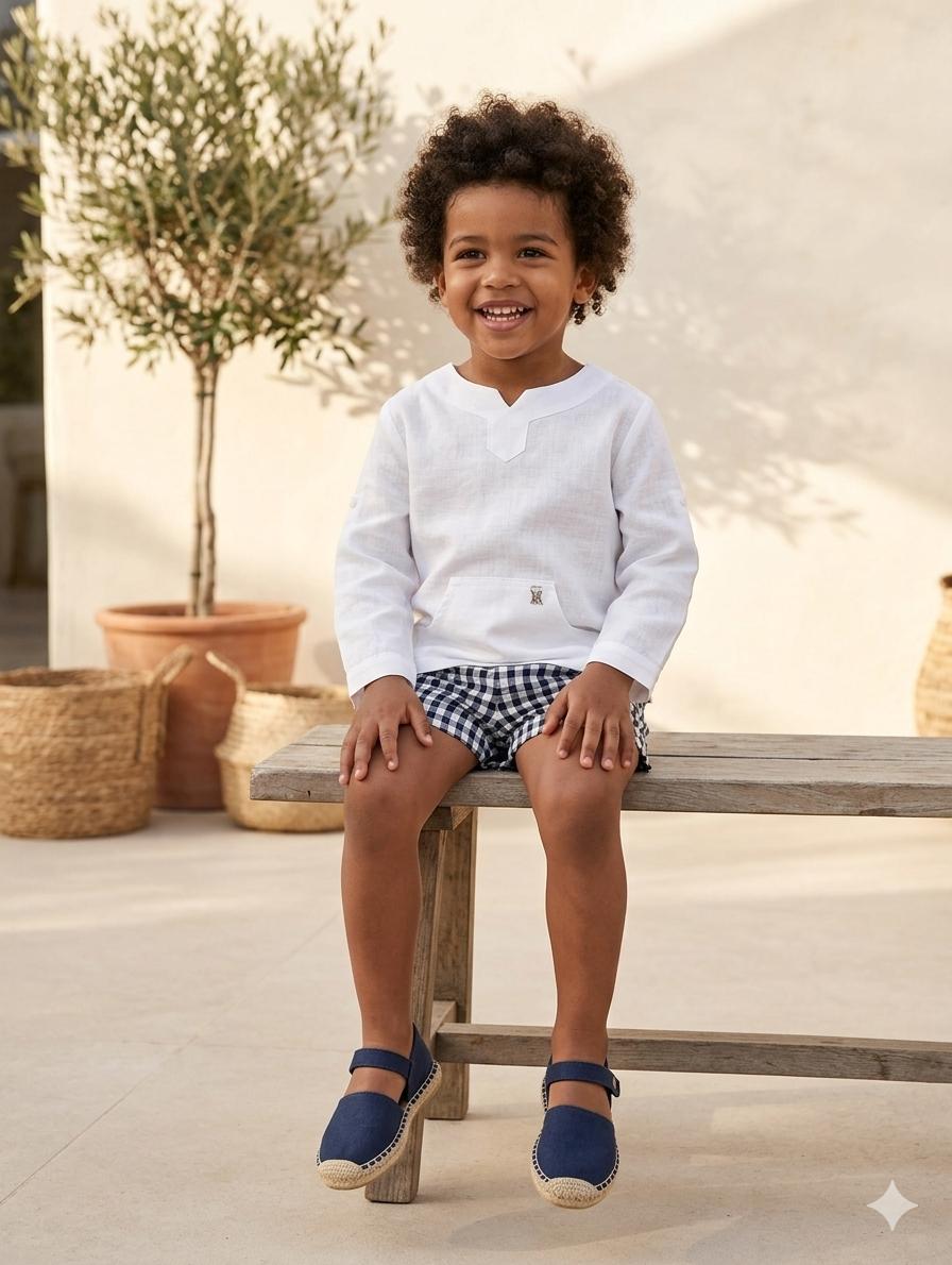 Nekenia Conjunto Bébe Camisa Beig Bolsillos Canguro Pantalón Corto Cuadro Vichy 2221503