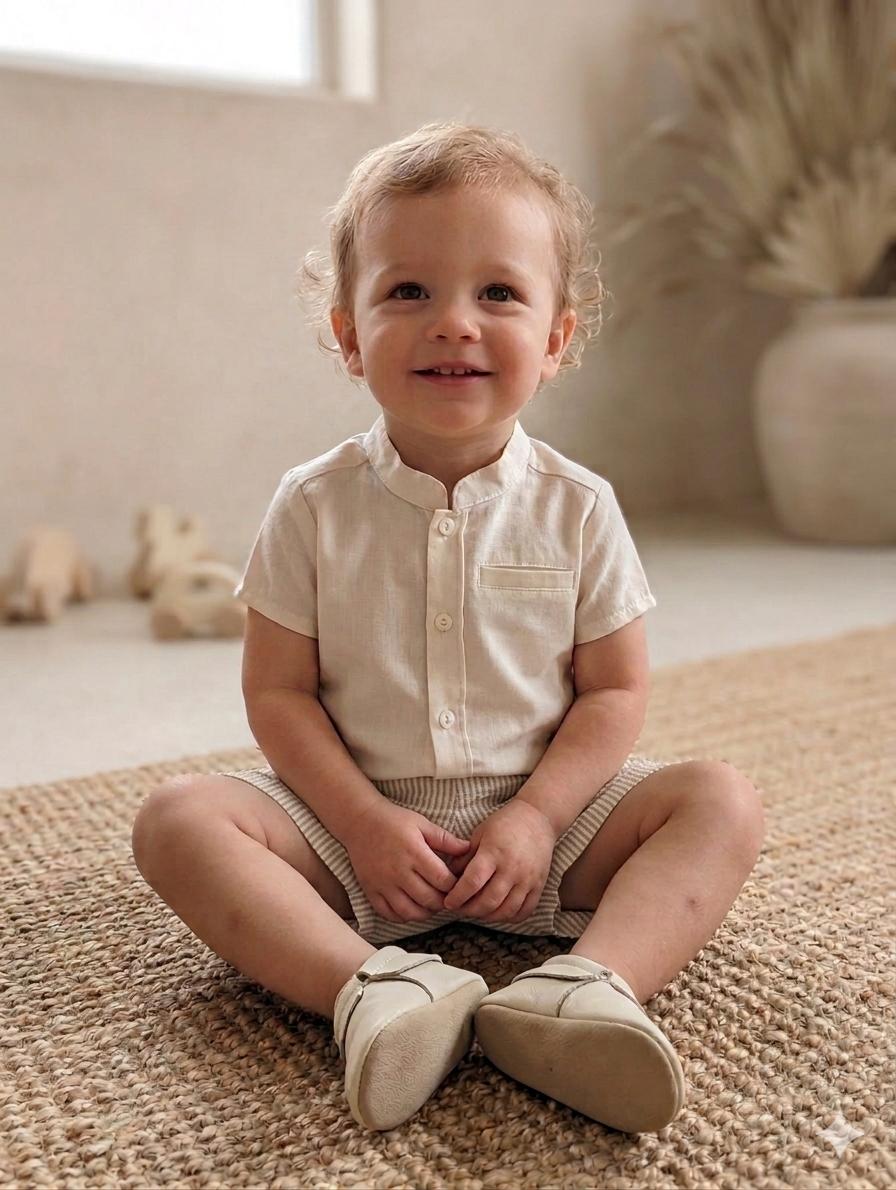 Nekenia Conjunto Bébe Camisa Beig m/c Pantalón Corto Rayas Beig Blanco 2221500