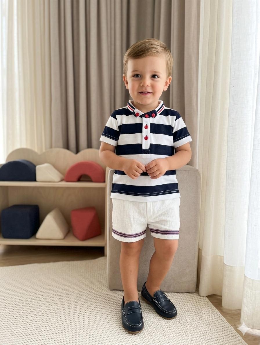 Vera by Nekenia Conjunto Polo m/c Rayas Pantalón Corto Blanco 22VB12