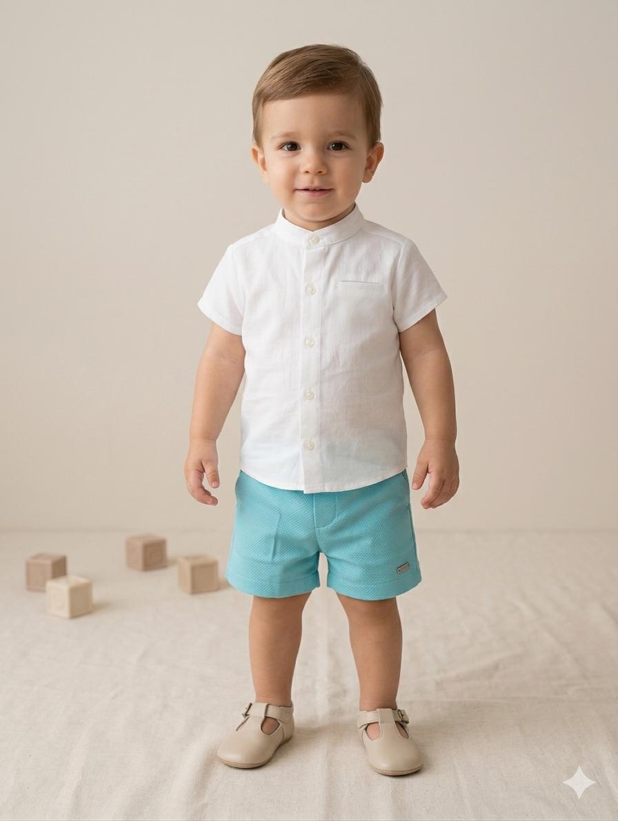 Nekenia Conjunto Bébe Camisa Blanca m/c Pantalón Corto Azul Turquesa 2221119