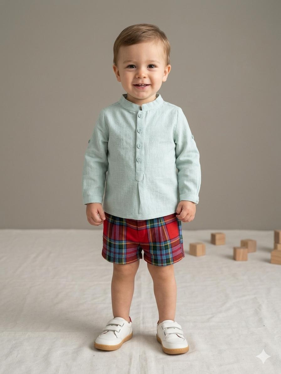 Nekenia Conjunto Niño Camisa Verde Pantalón Corto Cuadros 2321507