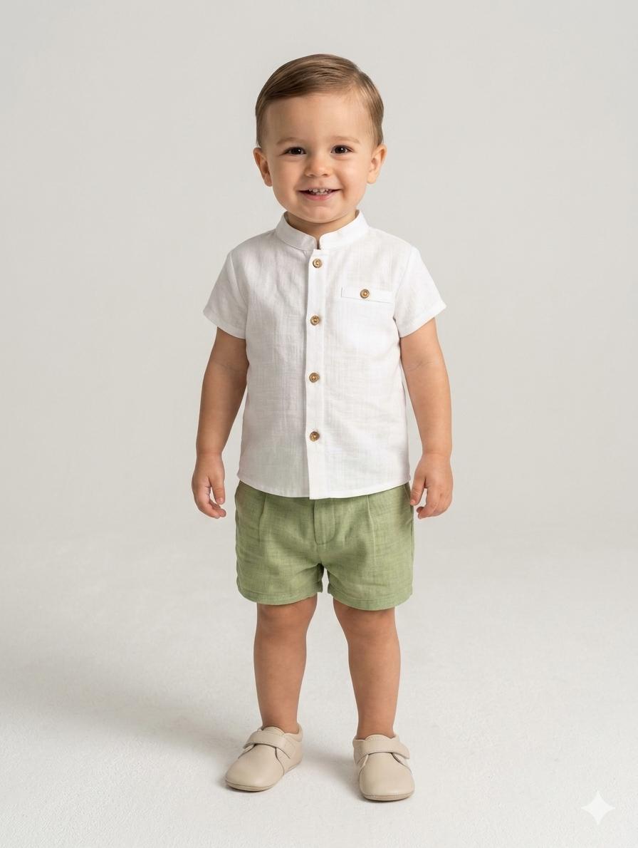 Nekenia Conjunto Bébe Camisa Blanca m/c Pantalón Corto verde Oliva 2321107