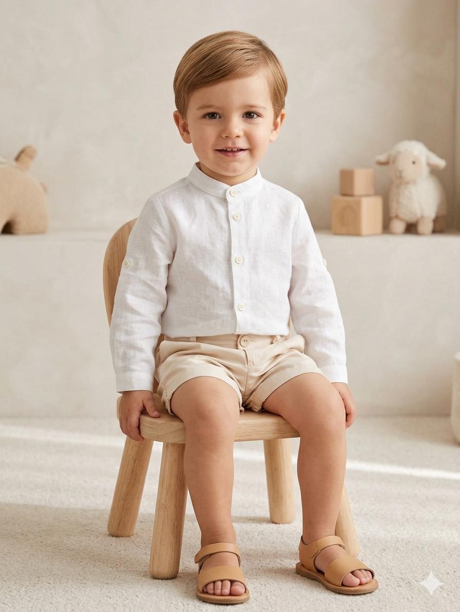 Nekenia Conjunto Bébe Camisa Blanca m/l Pantalón Corto Beig 2421502